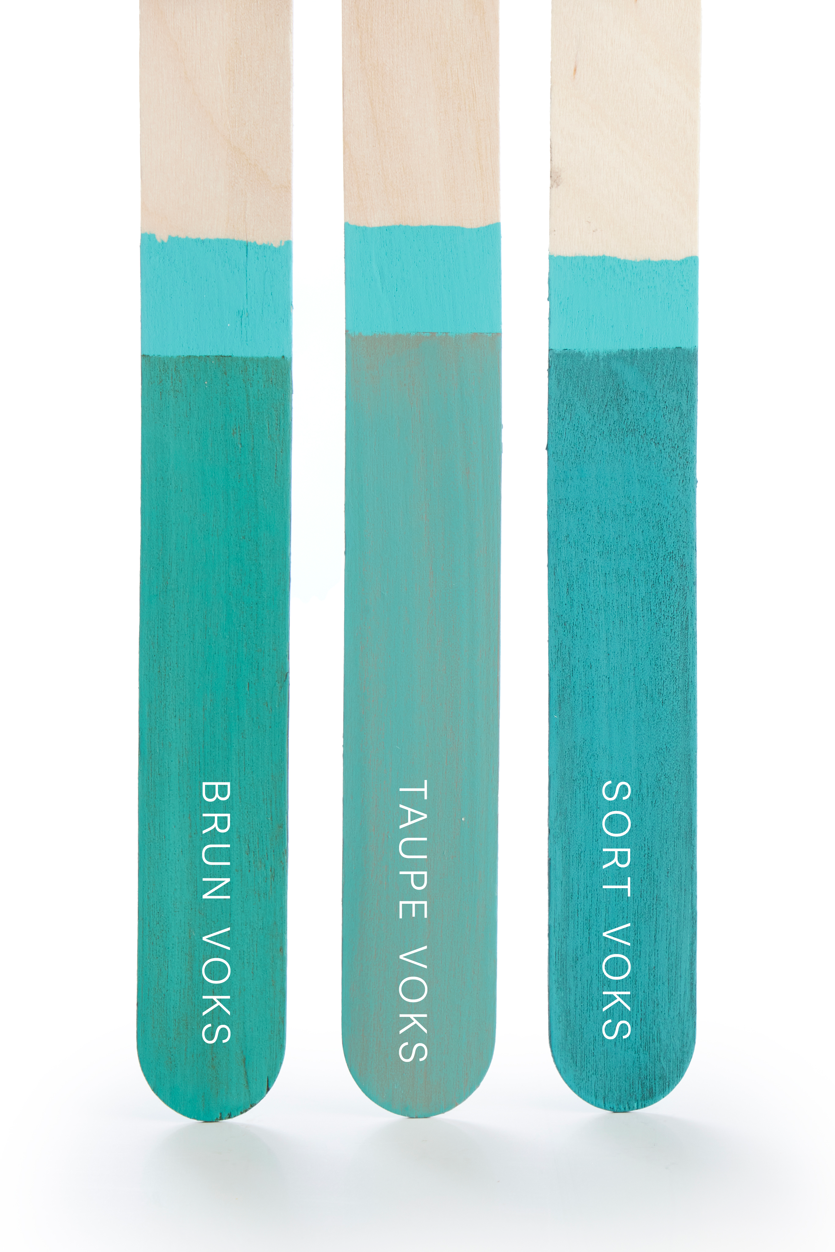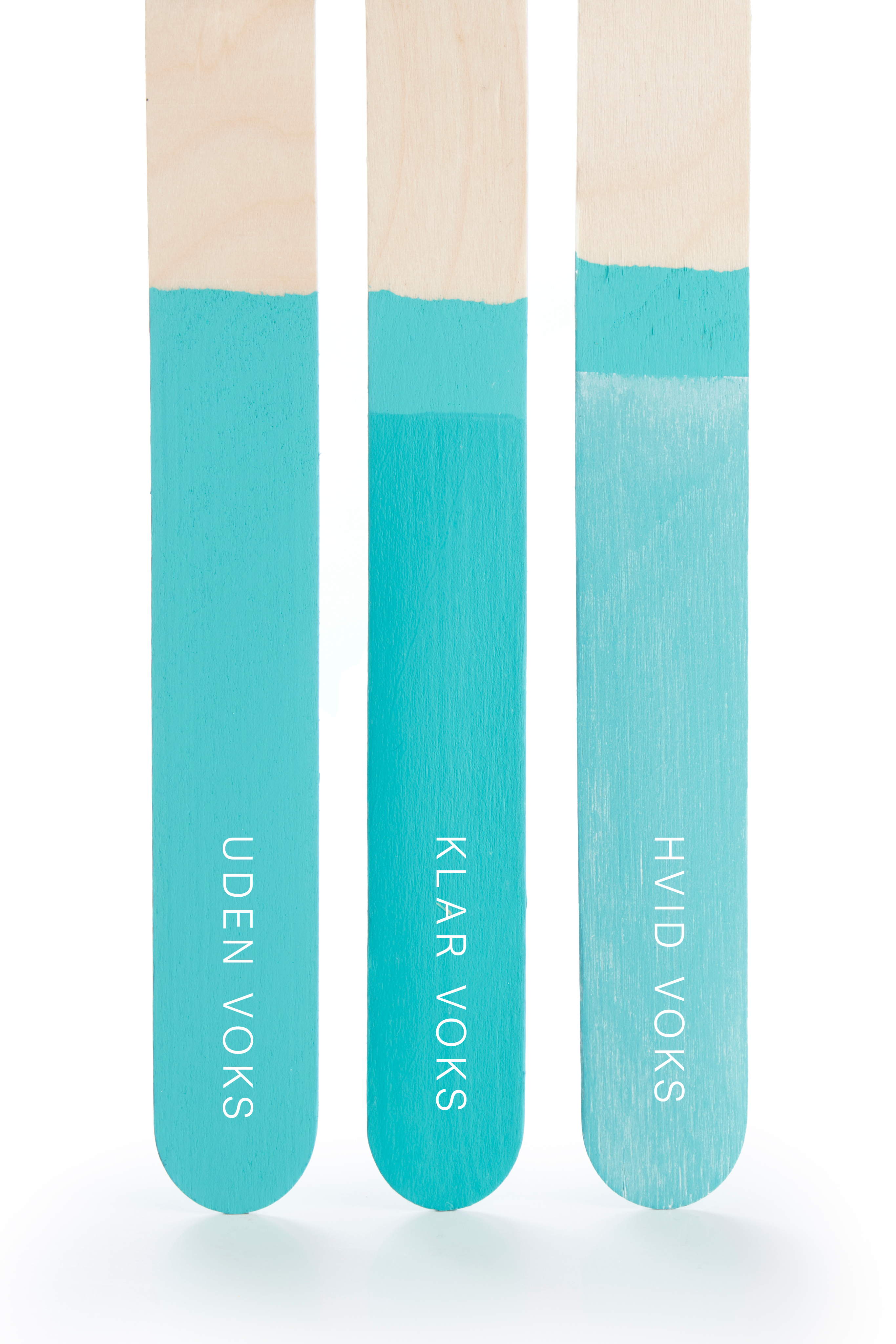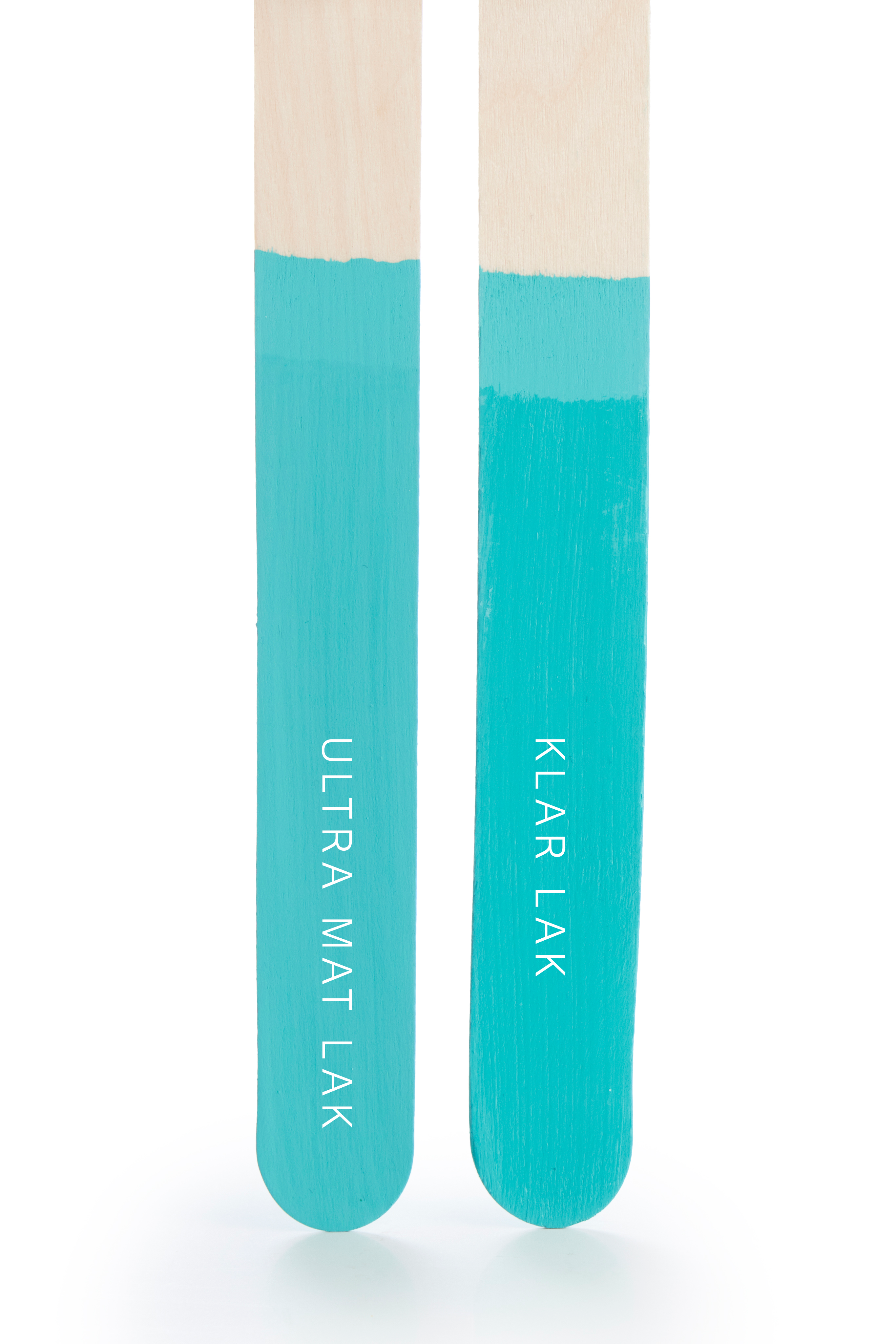 Kyst er en meget ”kvik” turkisfarve, som fungerer fint på et enkelt møbel, eventuelt i et alrum eller på børneværelset, hvis der er brug for et frisk indslag. De malede pinde viser hvordan farven forandre sig i forhold til vores forskellige voks og lak typer. Vandbaseret miljøvenlig kalkmaling som du trygt kan bruge i dit hjem og til dine børnemøbler.