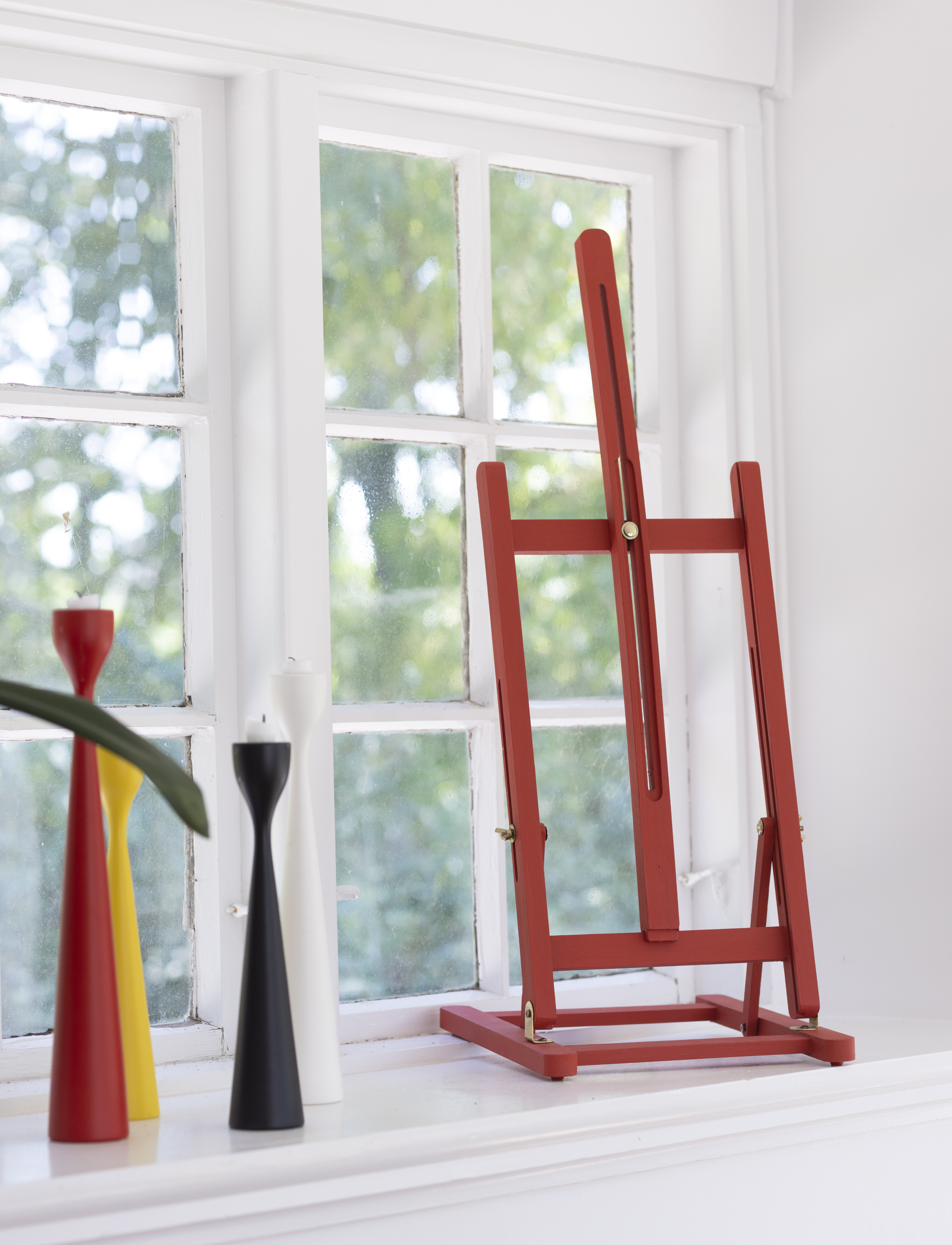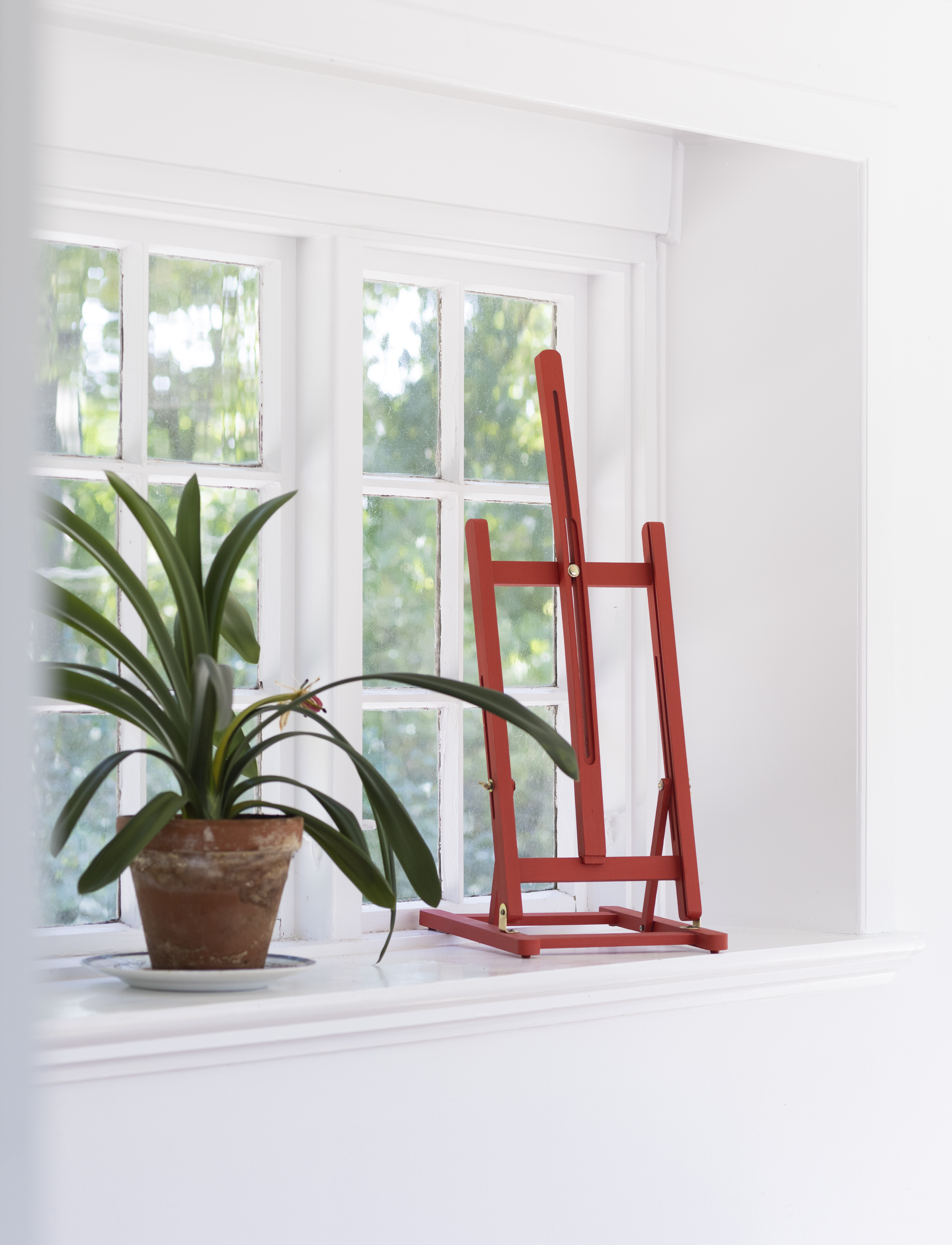 Det røde staffeli er malet med Hyben og efterbehandlet med Klar Voks.