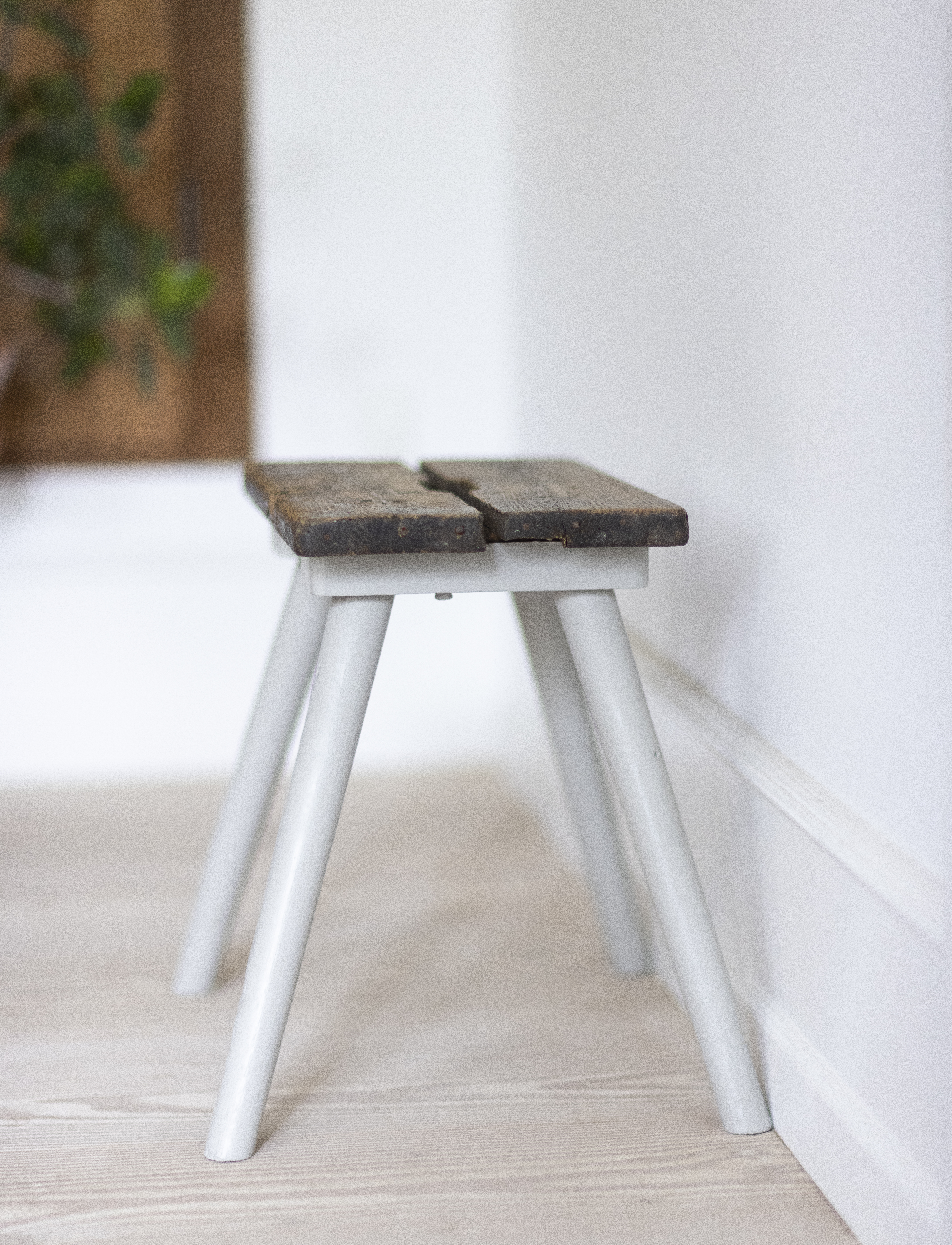 Drivtømmer, er en utrolig varm og tidsløs farve, med sin helt lyse grålige tone. Kalkmalingen er utrolig let at arbejde med og det kræver ikke det store forarbejde før du kan male. Du skal blot sørge for at rengøre dit møbel med Grundrens eller et andet rengøringmiddel, så overfalden er helt ren. Herefter skal dit møbel være helt tør inden du påfører malingen. Husk at det altid er en god ide at efterbehandle med Voks eller Lak, for at beskytte overfladen mod snavs og fugt. Vandbaseret miljøvenlig kalkmaling som er utrolig nem at arbejde med. Den smukke taburet er malet med drivtømmer og efterbehandlet med klar voks.