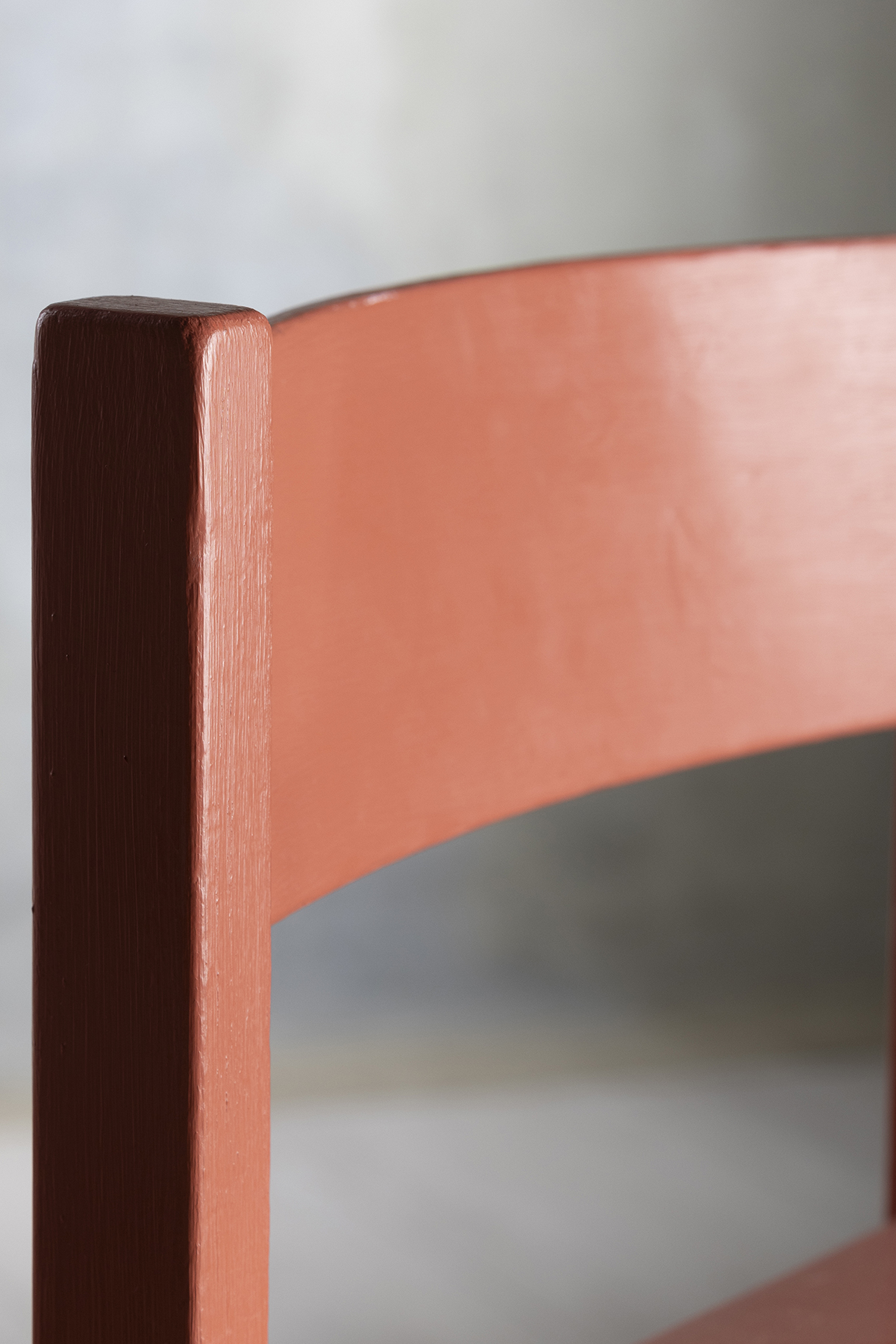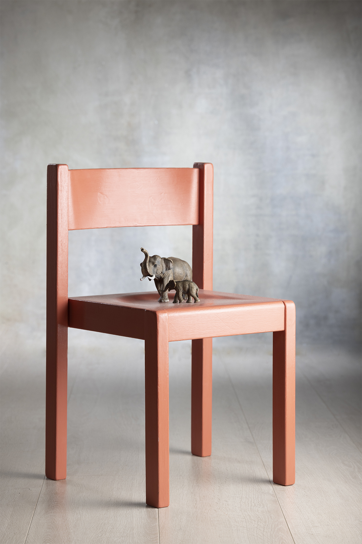 Den lille barnestol er malet med Aftenrøde og efterfølgende fået Ultra Mat Lak.