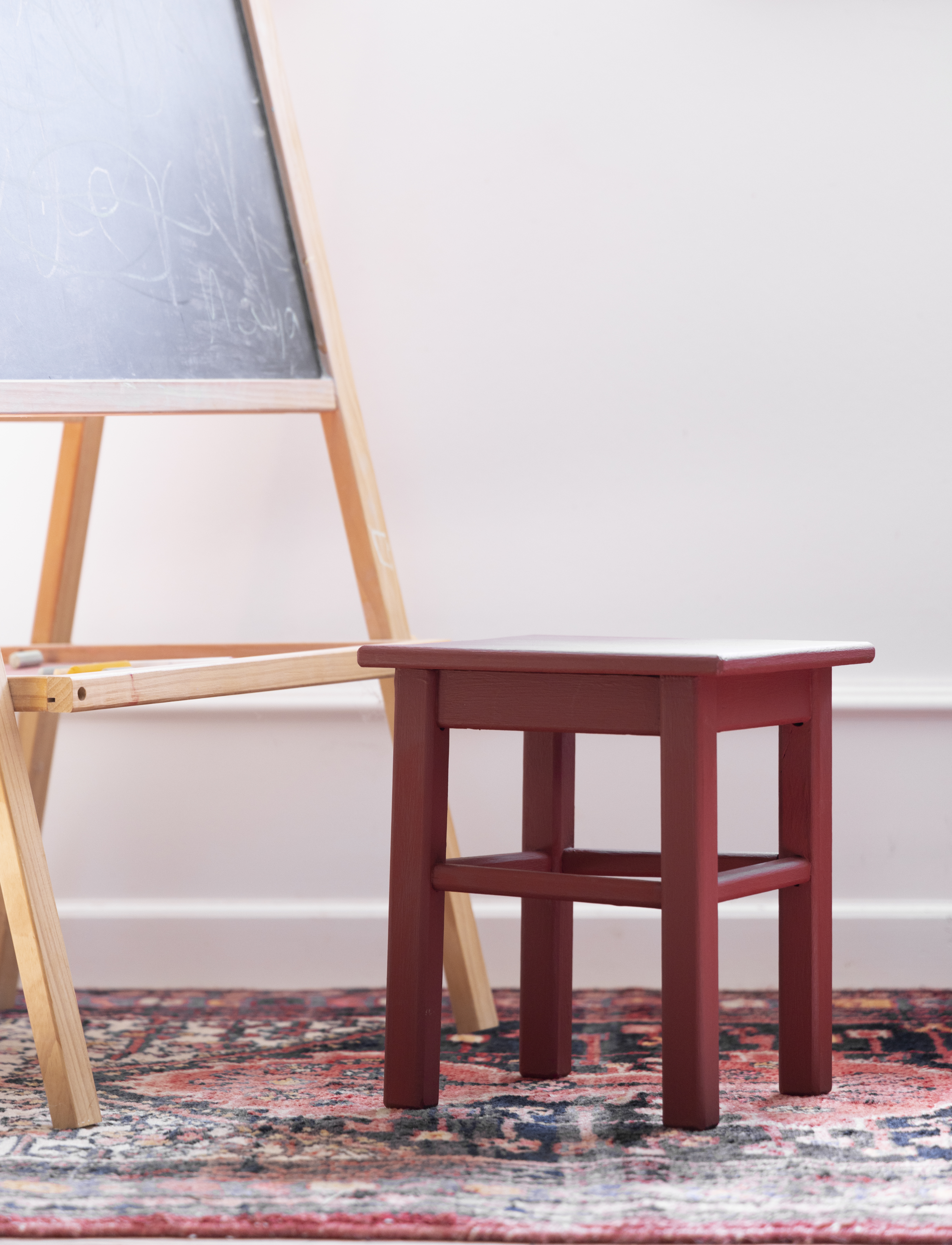 Den lille skammel er malet med Rømø Rød og har efterfølgende fået Ultra Mat Lak.