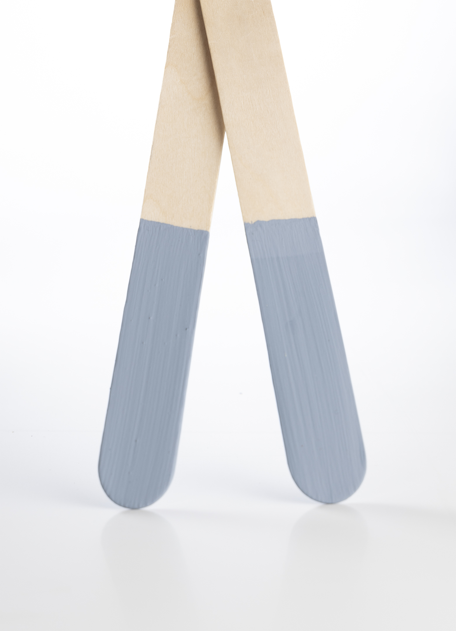 De blå pinde viser forskellen på Ultra Mat Lak og Klar Lak.Ultra Mat Lak skal påføres i tynde lag. Når den lægges på, fremstår den hvid, men efter tørring bliver den helt transparent. Derfor er det vigtigt at arbejde med flere fine lag, så du opnår den smukke, klare og matte finish, som beskytter uden at ændre farven på dit underlag.