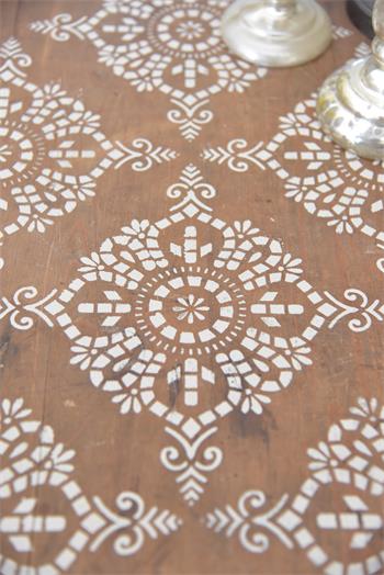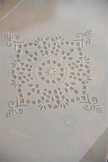 Et smuk firkantet stencil med filigree mønster 6 fra Vintage Paint. Stencil er lavet i folie så den kan vaskes af og genbruges mange gange, den er svær at slide op. Når du har malet det du gerne vil pynte med en bort og det er tørt, så brug stencil her og lav et smukt filigree mønster. Du kan bruge kalkmaling fra Vintage Paint, så bliver det særlig flot, det er rigtig nem at male med. Du kan dekorere på borde, kommoder og skabe, ja alt mulig hvor du har lyst til dette rudemønster, du kan også bare bruge et lille stykke af stencil, hvis du ikke vil have borten så lang.