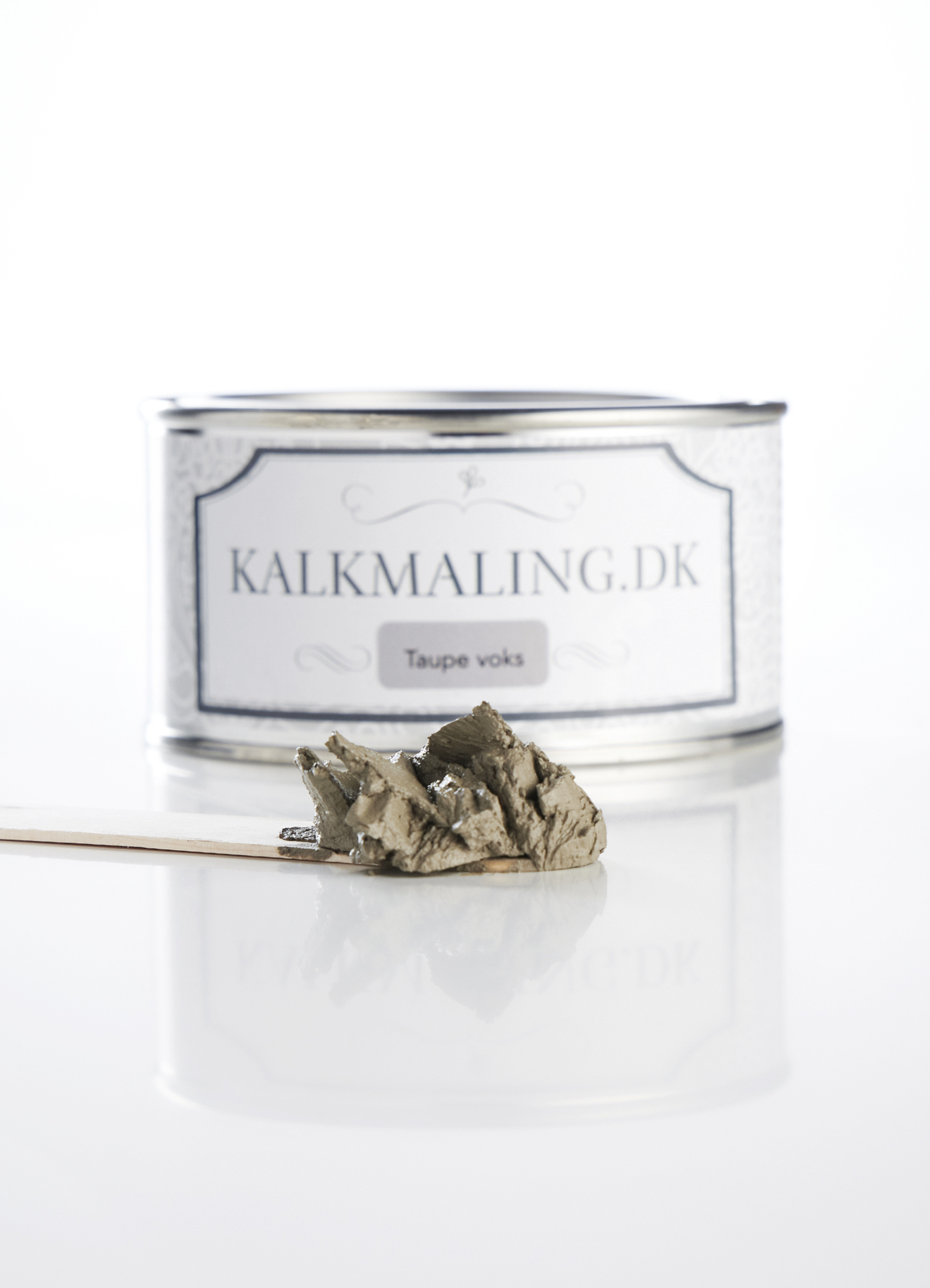 Voks i farven Taupe fra kalkmaling.dk er ligesom den hvide voks, mere mættet i farven. Hvor den brune voks er transparent, vil Taupe dække lidt mere og efterlade et smukt resultat i en grå nuance. Den er specielt smuk som forsegling på naturfarverne. Farven Taupe kan også anvendes hvis du ønsker at lave effekter på eksempelvis et gammelt møbel. Voksen kan anvendes på diverse udskæringer for at opnå et ældet udseende, husk dog først at forsegle med en klar voks på hele møblet, hvis du ønsker at beholder den originale kalkmaling farve du har malet. Efterfølgende kan du lave effekter med den grå voks, dette kan gøres ved at påfører voks på udskæringen og efterfølgende tørrer det overskydende af, dermed ses voksen kun i de dybe udskæringer/riller. Det er også muligt at påfører taupe voks i 1. lag, resultatet vil ændre den oprindelige farve på kalkmalingen og give et gråligt resultat, dette ser du på de malede pinde under hver farve fra Kalkmaling.dk.