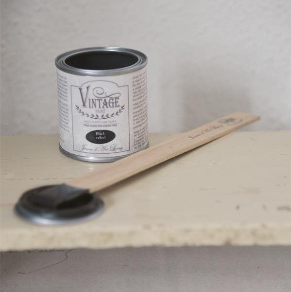 Kalkmalingen fra Vintage Paint i den populære farve Black Velvet er specielt velegnet til møbler og alt mulig andet, som du vil friske lidt op. Kalkmalingen giver det originale, matte, kalkede udseende, som mange gamle møbler har. Du kan bruge kalkmaling til næsten alle overflader uden forarbejde. Det gælder alle overflader lige fra træ til jern, stof, glas, og meget mere, prøv dig frem og forny dit gamle indbo. Malingen er vandbaseret, miljøvenlig og indeholder 100% naturlige ingredienser, og er derfor også velegnet til børnemøbler. Du skal være opmærksom på at det altid er godt at afslutte dit malerprojekt med at give Wax eller Lak, for at beskytte overfalden for snavs og fugt.