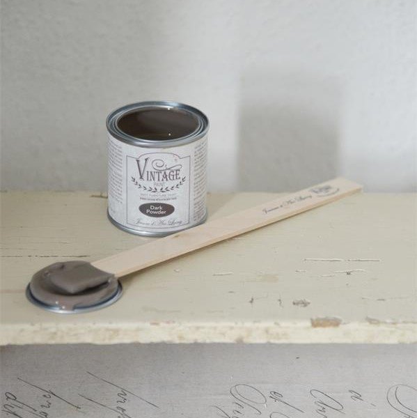 Vintage Paint er yderst velegent til møbler, gulve, ting i træ, som smykkeskrin. Her er den smukke dark/mørk -farve. Giver den originale, matte, kalkede udseende, som mange gamle møbler har. Malingen klæber til stort set alle overflader uden forarbejde. Malingen er vandbaseret og miljøvenlig.
