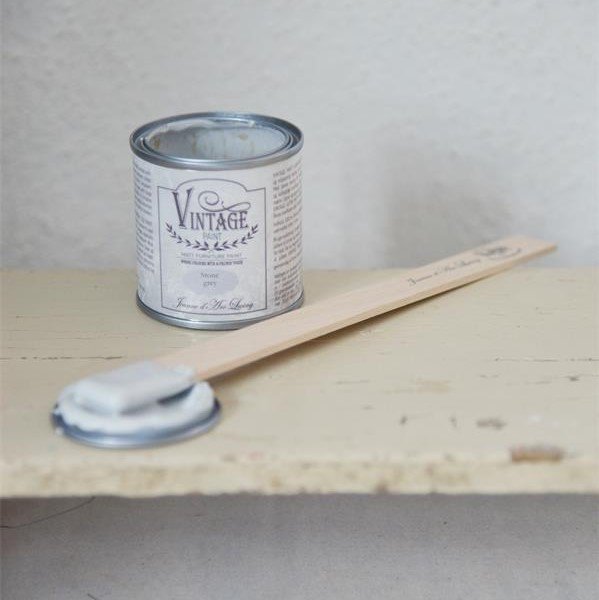 Kalkmalingen fra Vintage Paint er specielt velegnet til møbler og gulve. Her i den stengrå farve der vil gøre sig utrolig godt på en hel væg. Opnå det originale, matte, kalkede udseende, som mange gamle møbler har. Malingen klæber til næsten alle overflader uden forarbejde. Malingen er vandbaseret og miljøvenlig.
