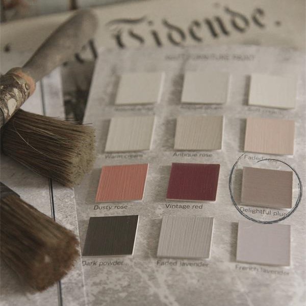 Jeanne d'Arc Livings malingen, vintage paint Delightful Plum/Dejlig Lilla er nem at male med og meget velegnet til møbler både store og små, gulve, alt i træ, glas, messing, metal,  ja stort set alle overflader.... Malingen er utrolig nem at male med og har en lækker konsistens. Klæber faktisk til alle overflader uden nogen form for forarbejde. Malingen er vandbaseret og meget miljøvenlig. Tørretiden afhænger af hvilken overflade du maler på, om det er rå eller slebent.