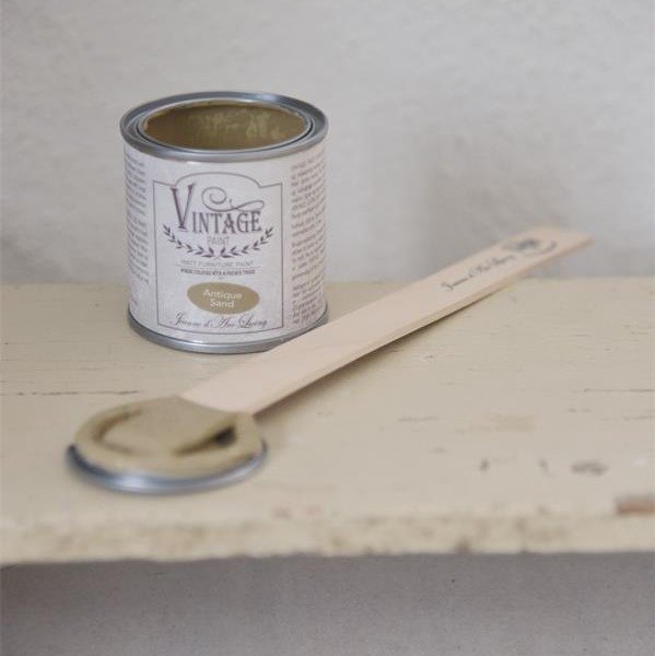 Kalkmaling fra Vintage Paint er utrolig nem og lækker at arbejde med. Her er det farven'Antique Sand'. Malingen klæber til næsten alle overflader uden forarbejde. Malingen er vandbaseret, lavet på kalk og rigtig miljøvenlig. Vintage Paint er på vandbasis og kan derfor fortyndes med vand. Pensler rengøres i lunken vand. Kalkmalingen har en utrolig god dække evne og en bøtte rækker længe... når du finder ud af hvor nemt det er, så vil du aldrig bruge andet maling.