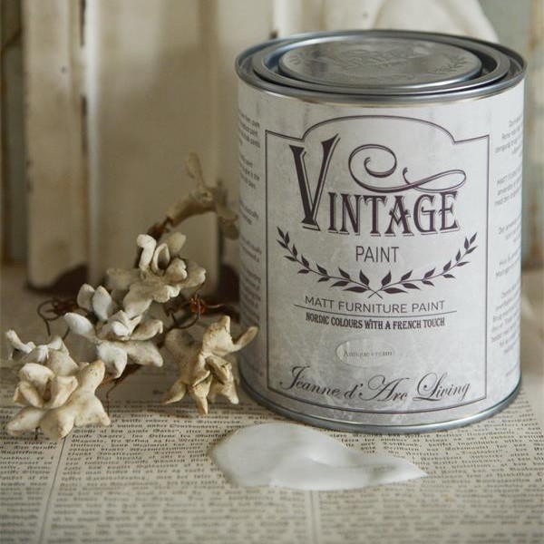Kalkmalingen fra Vintage Paint i farven Antique Creme/antik creme er god kvalitetsmaling, som du kan male på næsten alt med. Møbler, gulve, metal, glas, plast, og meget andet, det er kun at prøve sig frem. Malingen er vandbaseret og miljøvenlig, malingen består af tre ting - Kalk, vand og bindemiddel. Lidt mat og kalkede udseende giver vintage paint til dine ting, faktisk som mange gamle møbler har. Du kan male stort set alle overflader uden forarbejde og malingen dækker rigtig godt.