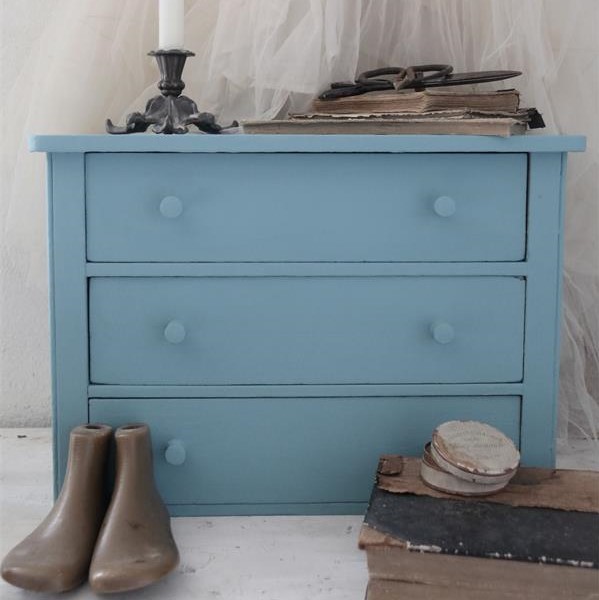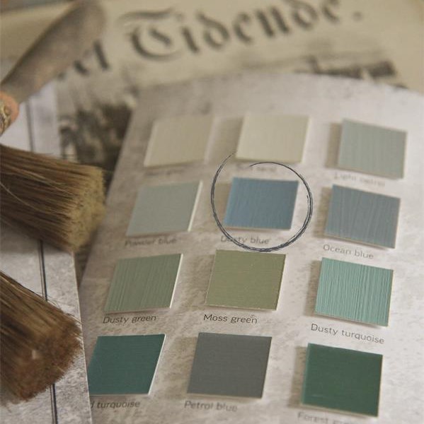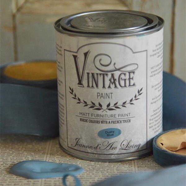 Dusty Blue/ støvet blå fra Vintage Paint er god kvalitetsmaling, som du kan male på næsten alle overflader med. Møbler, gulve, metal, glas, plast, og meget andet, det er kun at prøve sig frem. Malingen er vandbaseret og miljøvenlig, malingen består af tre ting - Kalk, vand og bindemiddel. Tørretiden afhænger af hvid du maler på. Du kan male stort set alle overflader uden forarbejde og det dækker super godt. Det giver en lidt kalket udseende, så smuk som i gamle dage.