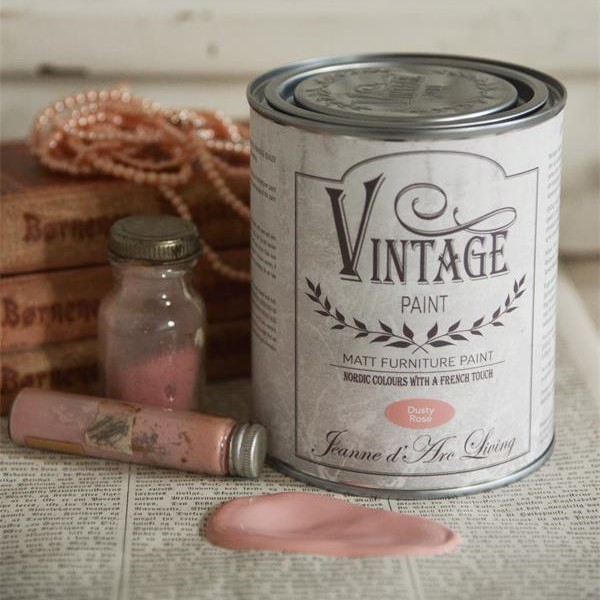 Chalk paint fra Vintage Paint er rigtig god kvalitetsmaling, her Dusty Rose/ støvet rosa - som du kan male på næsten alle overflader med og bruge til alle dine ting, der trænger til en opfriskning. Møbler, gulve, metal, glas, plast, og meget andet, det er kun at prøve sig frem. Malingen er vandbaseret og miljøvenlig, malingen består af tre ting - Kalk, vand og bindemiddel. Tørretiden afhænger af hvad du maler på. Du kan male stort set alle overflader uden forarbejde og det dækker super godt. Det giver en lidt kalket udseende, så smuk som i gamle dage.