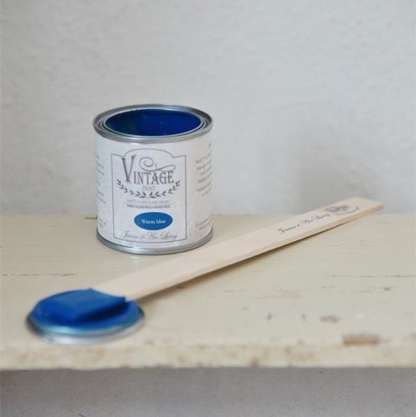Warm Blue er en rigtig dejlig farve til dine møbler. Kalkmalingen fra Vintage Paint er en skøn maling med en lækker konsistens. Kalkmalingen er vandbaseret og består kun af vand, kalk og bindemiddel. Farven varm blå fra Vintage Paint går du ikke fejl af, og den er super flot til småmøbler, en kedelig skammel, eller måske en gammel tallerkenrække som skal have et nyt look.