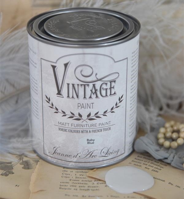 Kalkmaling fra Jeanne d'Arc Living, her en skøn maling i baby lyseblå, som du kan male på alle materialer med. Hvis du har en lille kommode, en skammel eller en gammel messing lysestage som du er blevet lidt træt af, så mal det med kalkmaling i stedet for at smide det ud.