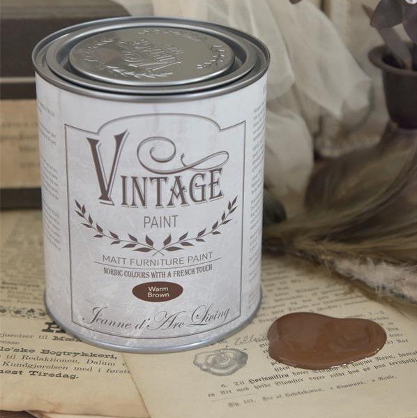 En lækker varm brun kalkmaling fra Jeanne d'Arc Living, næsten som smeltet chokolade. Kan du ikke lige se det for dig, en gammel kommode malet i den varme brune farve? - måske har du et lille møbel der passer til en chokolade brun farve som du kan male, eller måske noget helt andet. For du kan nemlig male på næsten alle materialer såsom tin, keramik, glas, metal af forskellige art, træ og meget andet, og så er kalkmalingen drøj i brug og dåsen slår til længe. Kalkmaling er så nem at bruge og det er endda uden det store forarbejde, dine ting skal bare lige vaskes af for snavs. Det lyder måske mærkeligt at man kan male på alle materialer med kalkmaling, når det kun består af kalk, vand og bindemiddel, men det er sandt. Du skal bare huske at give det en efterfølgende voksbehandling med Vintage wax, det forhandler vi også. Man kan slibe lidt mellem hvert lag maling og inden det får voks, så bliver det meget smukkere og det kan tørres af med en fugtig klud når voksen lige er hærdet op.