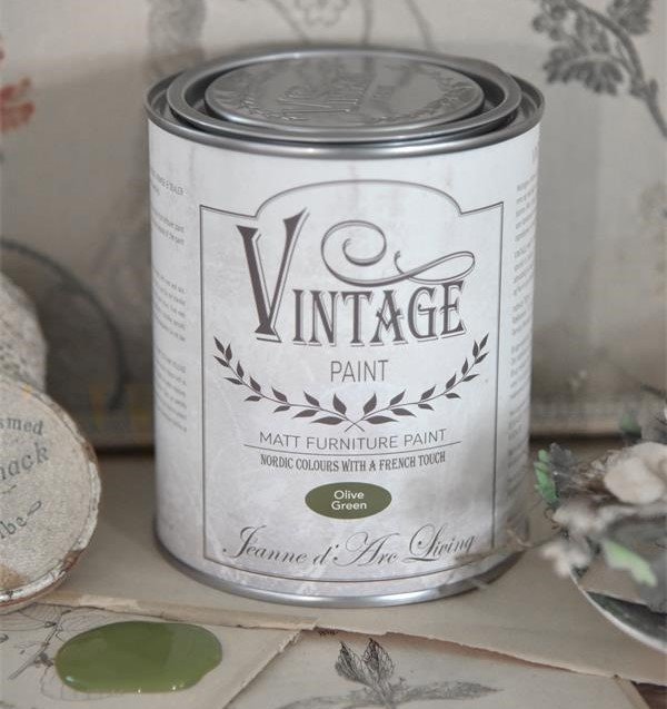En smuk olivengrøn farve fra Vintage Paint. Deres kalkmaling er så nem at male med. Det er drøjt i brug, det tørrer hurtigt og det dækker super godt, det kan da ikke blive bedre og så kan du endda male på alle overflader. Du kan male på træ, jern, pap, messing, glas, plast, stof og meget mere. Det er bare med at få det prøvet af, vi har også små dåser, hvis du lige vil prøve det først inden du går i gang med et større projekt. Det lyder måske mærkeligt at man kan male på alle materialer med kalkmaling, som kun består af kalk, vand og bindemiddel, men det er sandt. Du skal bare huske at give det en efterfølgende behandling med enten vintage wax eller lak, som du også finder her hos os. Man kan slibe lidt mellem hvert lag maling og inden det får voks, så bliver det meget smukt. Kalkmaling er så nem af bruge og det er endda uden det store forarbejde, dine ting skal bare lige vaskes af for snavs. Miljøvenlig kalkmaling som er let at arbejde med.