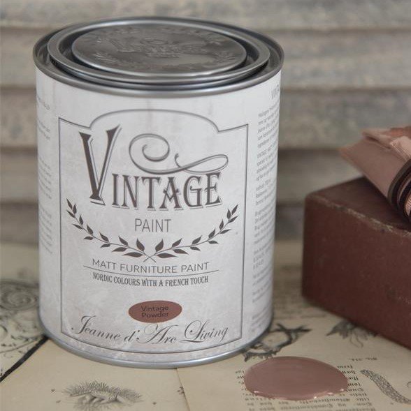Vintage Paints kalkmaling vintage powder er en skøn mørk pudder farve. Farven vintage powder matcher de nye tapeter fra Jeanne d'Arc Living. Du kan roligt male et skab med glaslåger og tapetsere bagvæggen indeni med en skøn tapet der matcher og derved skabe din helt egen stil og indretning. Kalkmaling er utrolig nem at bruge og det er endda uden det store slibe forarbejde, dine ting skal bare lige vaskes af for snavs, så malingen kan binde fast. Kalkmalingen er meget miljøvenlig og består kun af tre ting, nemlig vand, kalk og bindemiddel, der er ikke noget giftig i det. Når du har malet dine ting med kalkmaling fra Jeanne d'Arc Living, så skal de lige tørre, derefter skal du give det en gang voks eller to, alt efter om det skal stå ude eller inde. Er det blomsterkrukker til haven, skal det have to gange voks. Jeg har malet to store metal dåser til blomster udendørs, de har stået ude et år nu (sommer og vinter), uden at de er rustet.