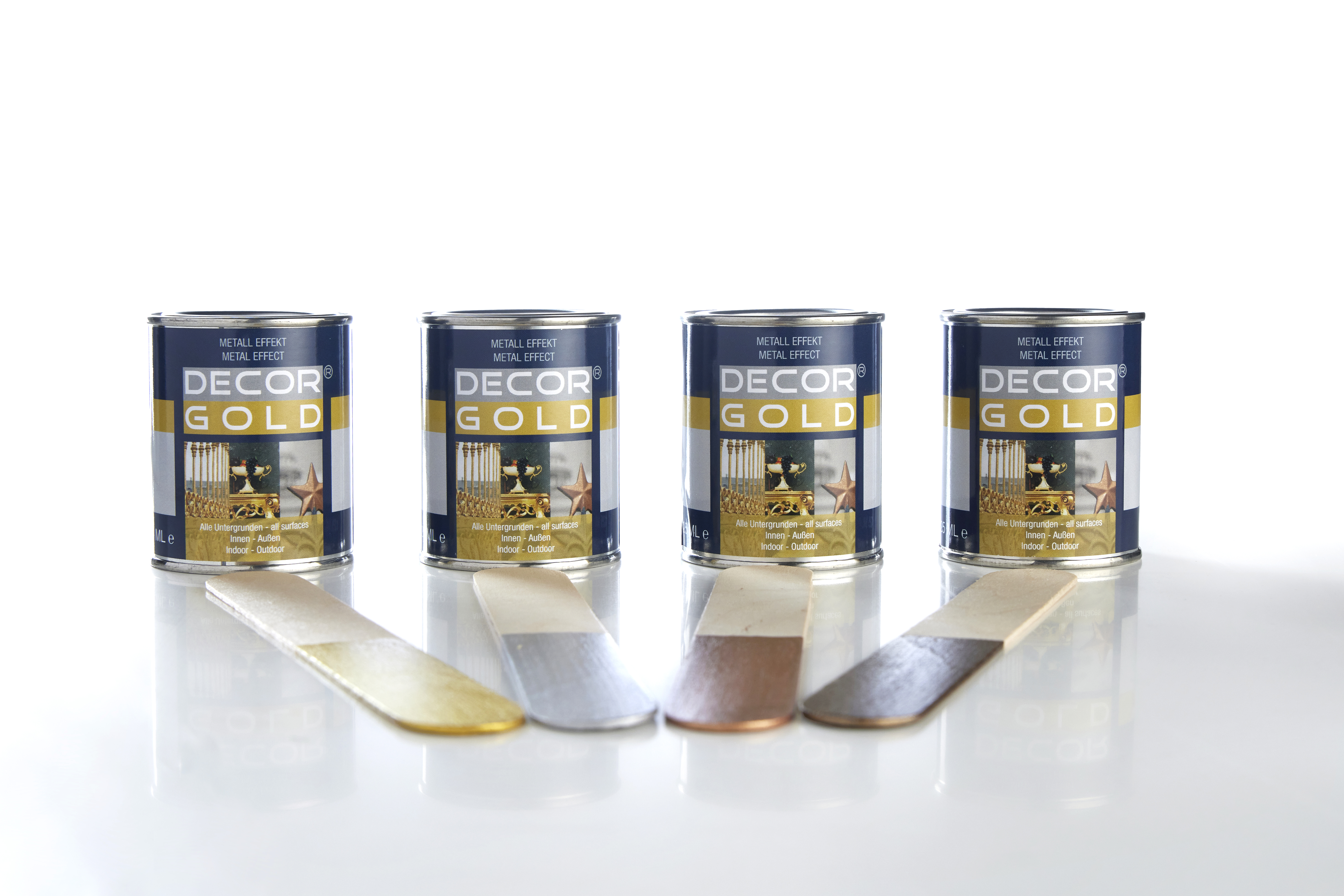 DecorGold Bronze metal effekt kan anvendes sammen med kalkmaling, voks og vandbaseret lak på møbler og andre effekter. Brug bronze malingen til dekoration eller effektmaling ovenpå vores kalkmaling. Produktet er vandbaseret og kan tyndes med vand. Kan anvendes inden og udendørs.