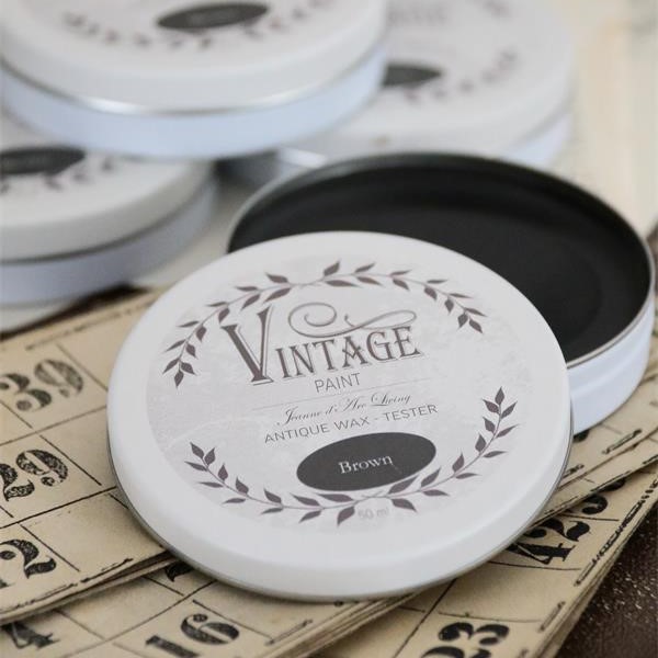 Til forsegling af overfladen på kalkmalingen, bruges Vintage Paint's Wax. Kalkmalingen efterbehandles med voks, så overfladen er nemmere at vaske af, og forbliver pæn i lang tid. Bruger du den brune voks får du et 'gammelt' udseende på dit møbel- en meget autentisk farve. Lidt a´la fransk landstil. Den brune voks, kan bruges oven på alle farver, alt efter hvad udtryk du vil fremkalde. Ønsker du at beholde den oprindelige farve som kalkmalingen har, kan du give klar voks i 1. lag og derefter lave et "gammelt" udtryk med den brune voks. Det kan påføres med en pensel, svamp, klud eller vokspude og tørre i 1/2 til 1 time, derefter kan det poleres efter med en klud. Er du i tvivl om hvordan du skal bruge voksen, så skal du bare spørge og vi vil være behjælpelige med rådgivning. Det er med voks magien opstår, og du kan trylle det udtryk frem du ønsker, God fornøjelse.