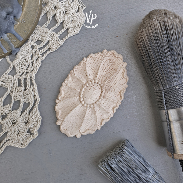 Sødt dekorations Ornament i træ fra Vintage Paint. Mangler du lige et ekstra romantisk pift til dine møbler og dit hjem, er et ornament et oplagt valg til at skabe en romantisk stemning. Dette ovale ornament er med fine bølge udskæringer der giver et rigtigt flot mønster. Brug træudskæringen på en skabslåge, en skuffe eller dekorer en kasse med det, og du skaber let et nostalgisk udtryk på møblet og i hjemmet. Ornamentet fra Vintage Paint er lavet i naturfarvet træ. Du kan male og/eller patinere ornamentet, så det matcher møblet eller hvor du vælger at sætte træudskæringen i din indretning. Fin lille træudskæring der forvandler dit møbel og dit hjem. Kiks som ornamenter også kaldes, har flere anvendelesmuligheder, f. eks. til dekoration på møbler, døre og vægge. Kan males og patineres med Vintage Paint, som vi også forhandler. Træudskæringen giver et flot autentisk look i den franske landstil. Fås i forskellige størrelser og faconer, som du også kan finde her på vores webshop.