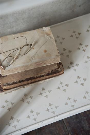 Fin stencil i plast som passer perfekt til din dit næste renoverings projekt fra Vintage Paint. Med stencil kan du på en enkel og fin måde forny - ja alt muligt - ved brug af få midler, du har kun brug for kalkmaling og et stencil for at lave det fine mønster. Dette stencil er lavet i plastik og kan derfor bruges igen og igen - du skal blot vaske den ren når du har brugt den. Kalkmaling er kommet for at blive og det er så let at arbejde med, så enhver kan forvandle et gammelt møbel til et rent mesterværk. Brug det fine stencil på fronten af dine skuffer - måske ovenpå dine træ skuffer, hvor du kan påføre det fine mønster med en grå eller sort farve fra vores Kalkmaling, er skuffer i lyst træ kan du i stedet benytte hvide elle creme farver. Når du påfører maling på din stencil, kan dette gøres med en pensel med korte hår eller en svamp hvor du dupper det på. Brug stencil til alle dine gør det selv projekter hvor du nemt kan renoverer en gammel serveringsbakke, skammel, en plastikbeholder i en fin form som du kan forvandle til opbevaring af kaffe, te eller måske en gammel kagedåse til dine småkager. Mal med kakmaling og påfør derefter effekter med stencil, så bliver det ikke lettere.