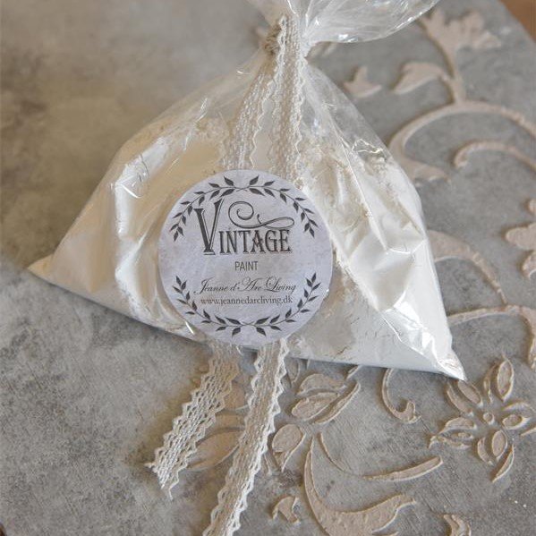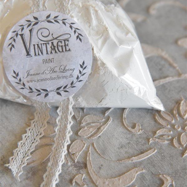 Structure powder til spartling fra Vintage Paint. Lav de fineste æsker med dette produkt, som brugt efter anvisninger sammen med stensils, giver et flot ophøjet resultat, alt efter hvor meget du smører på. Til spartling på stencils hvor man blander i forholdet: 1 del filler til 4 dele vintage paint, eller efter behov for ønsket konsistens. Bland filler med den farve Vintage Paint du vil fremhæve og rør ca. 2 min. til en jævn masse. Derefter har du ca. 15 min. til at arbejde med den udrørte filler. Bemærk: Farven vil bliver lidt lysere ved tilsætning af filler, da det er kalkhvid pulver. Tørretid: 1-2 timer. Hvorefter du kan slibe og patinerer med farvet eller klar voks fra Vintage Paint Vintage Wax. Der medfølger en lille plastikspartel til brug ved påføring. der kan tilkøbes ekstra spartler, andet sted på shoppen.