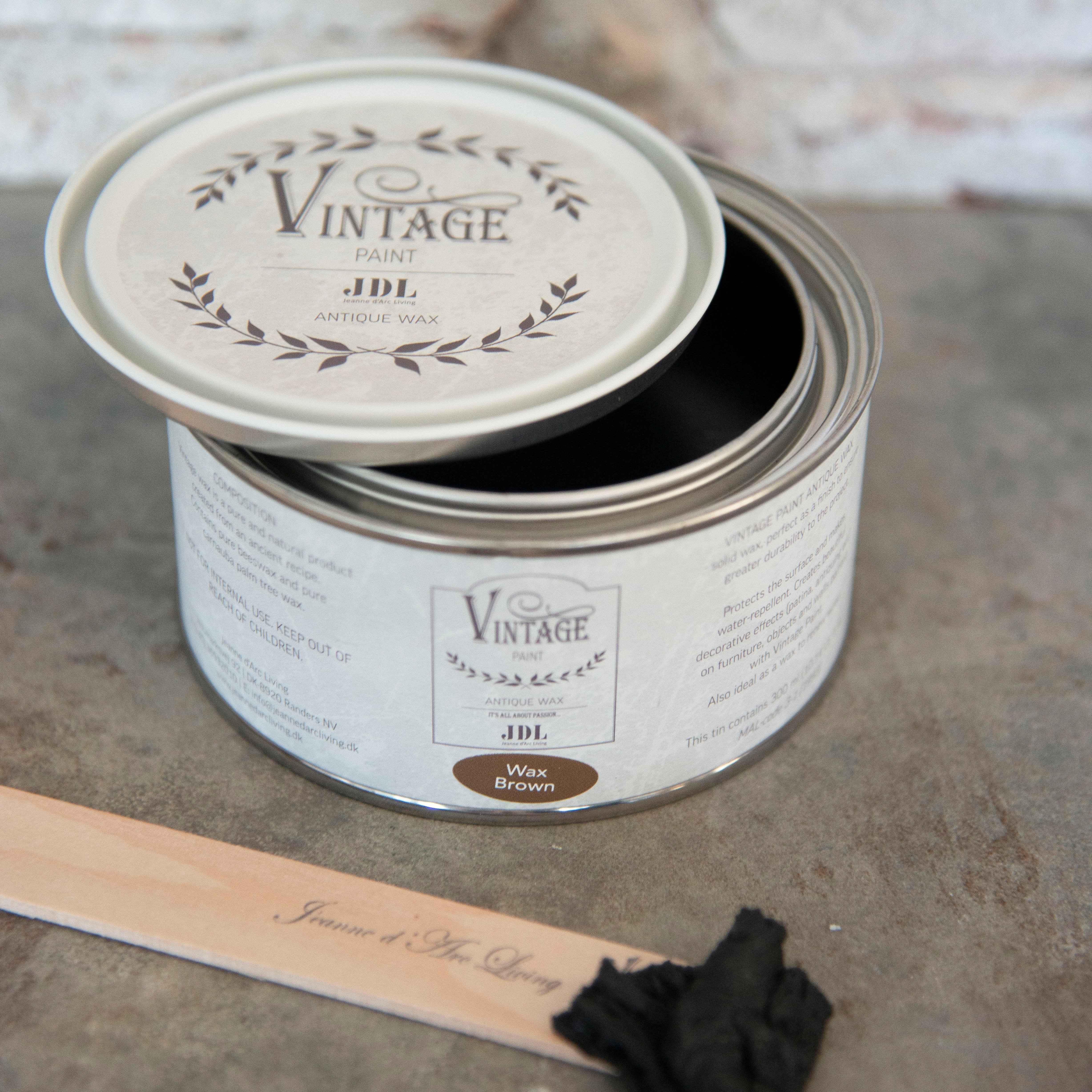 Antique wax i farven brown fra Vintage Paint. Perfekt til efterbehandling af møbler eller andre malede småting. Dermed opnår du det perfekte autentiske udseende på dine møbler og overflader. Voksen beskytter og vil gøre overfladen yderst vandafvisende.