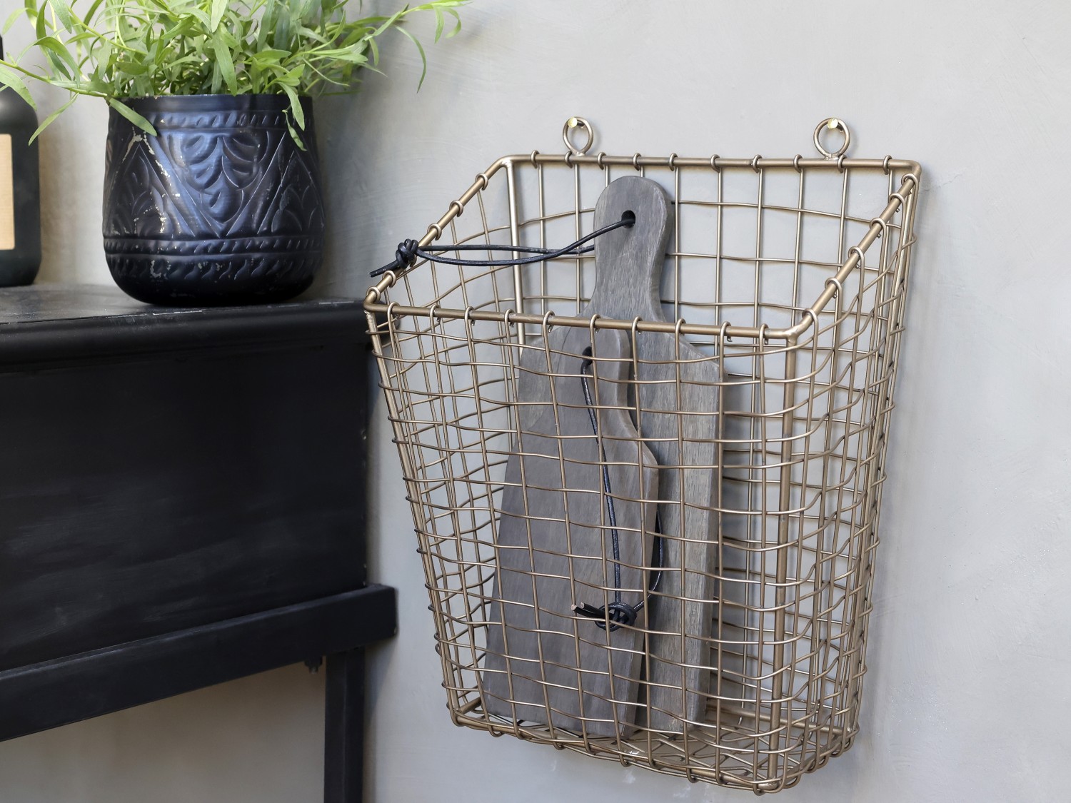 Utrolig flot kurv fra Chic Antique fra serien Fil de fer, i antique messing. Kurven fra Chic Antique har mange anvendelsesmuligheder, måske du kunne bruge den i køkkenet til dine store skærebrættte, eller på badeværelset til små gæstehåndklæder som bruges efter at have vasket hænder. Fil de fer kurven ville også være utrolig praktisk i entreen til handsker, tørklæder og andre småting. Det kunne være fint at have 2 - 3 stykker hængende under hinanden, så har hvert familiemedlem et sted at ligge sine ting.