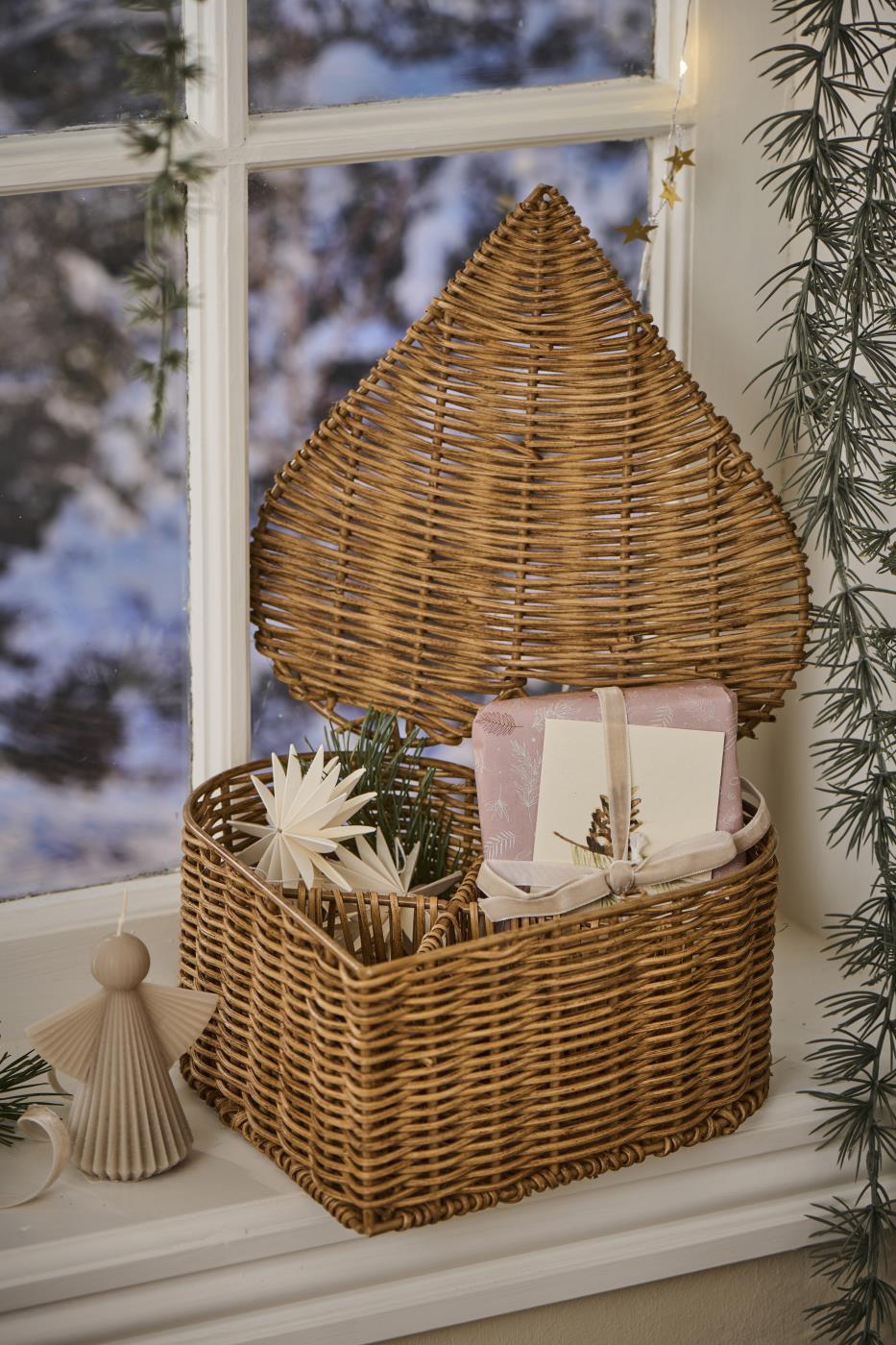 Denne flotte håndlavede adventsæske, er fra Ib Laursen. Æsken er udformet som et stort håndlavet hjerte af rattan og metal. Den smukke håndlavede serie under navnet Cane.  Rattan er et materiale, der stammer fra palmeplanter. Det er kendt for sin fleksibilitet og styrke, hvilket gør det til et ideelt valg for mange indendørs og udendørs anvendelser.