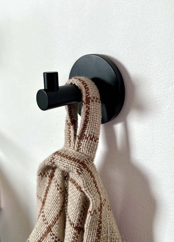 Solid knage fremstillet i messing med sort finish, fra MOUD Home. Knagen er et indretningshit med sit enkelte design og sin sorte farve, den passer godt ind i ethvert hjem. Brug denne knage på dit badeværelse, og hæng 3-4 knager på en lige række eller forskudt fra hinanden, så er der plads til håndklæder og din morgenkåbe. Brug også gerne en ved siden af håndvasken, så du nemt kan tørre hænder efter du har vasket dem. Du kan ligeledes anvende knagen til dit overtøj i entreen eller viskestykker og grydelapper i køkkenet. Det er ofte de små indretningsting som lige giver det sidste til et rum - brug disse knager og opnå et tidsløst design som holder i mange år.