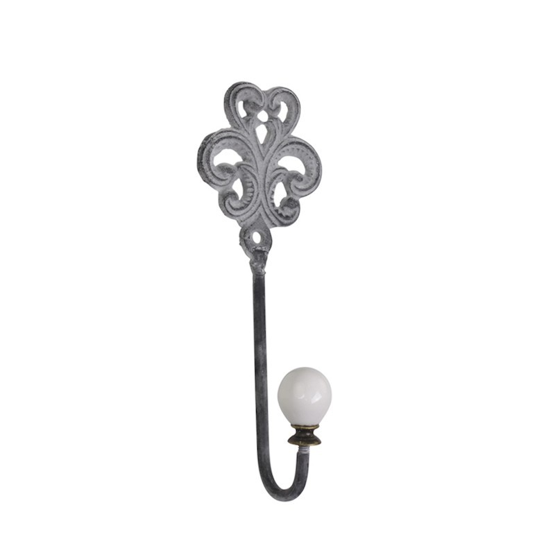 Fra Chic Antique er her en fin nostalgisk enkelt knage i farven antique grå med dekor og knob. Knagen kan bruges i flok eller alene, alt efter dit behov. Denne knager er rigtig god i køkkenet til dine viskestykker og grydelapper, eller brug den i badeværelset til dine håndklæder. Hæng gerne 2 eller 3 stykker ved siden af hinanden, så du har plads til alle dine håndklæder. Kan bruges overalt i dit hjem, lige fra dit soveværelset, entreen, badeværelset, i køkkenet og til pigeværelset, ja mulighederne er mange og du bestemmer.