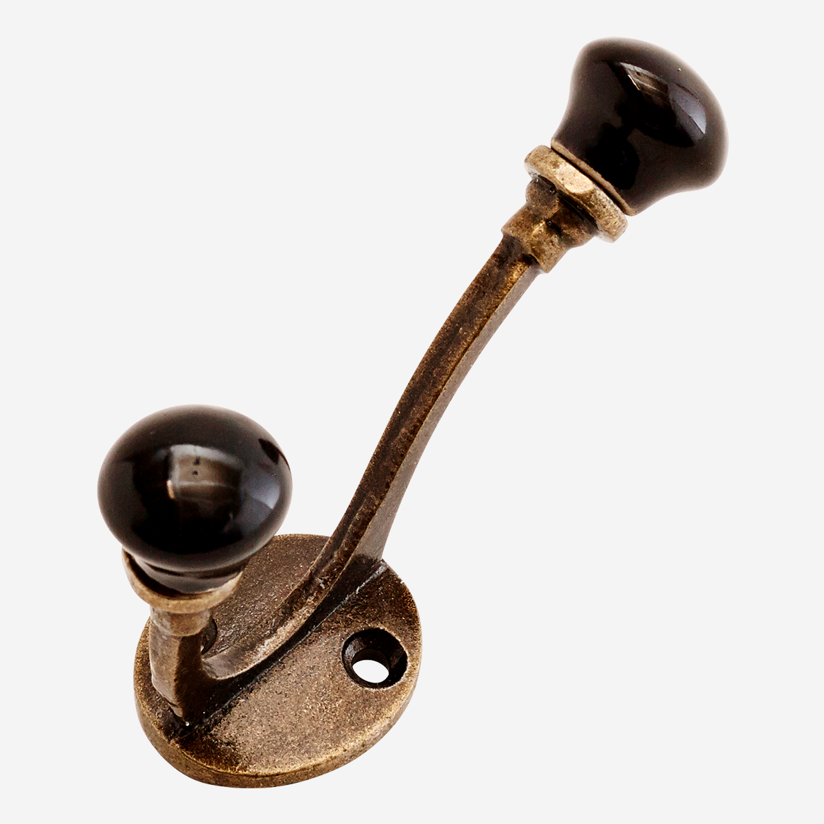 Madam Stoltz Dobbelt knage i jern med porcelæns knop, sort