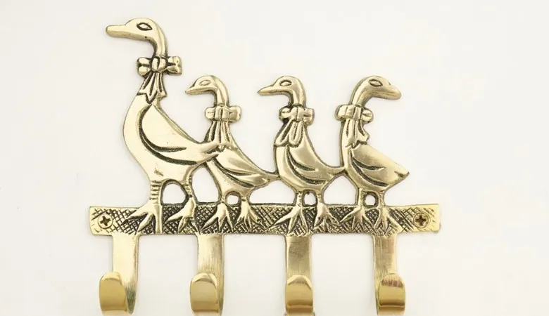 Denne smukke knagerække fra Lundager kombinerer klassisk design med fine, dekorative detaljer. Den er udført i metal med en elegant, guld finish og prydet med fire knagger og en gåse familie, som tilfører et charmerende og tidløst udtryk. Knagerækken passer perfekt i entréen, køkkenet eller soveværelset, hvor den både fungerer praktisk og som en dekorativ detalje på væggen. De fire kroge giver god plads til jakker, tasker eller håndklæder. Med sit romantiske og vintage-inspirerede design er denne knagerække ideel til dig, der ønsker at skabe en hyggelig og personlig indretning med klassiske elementer.