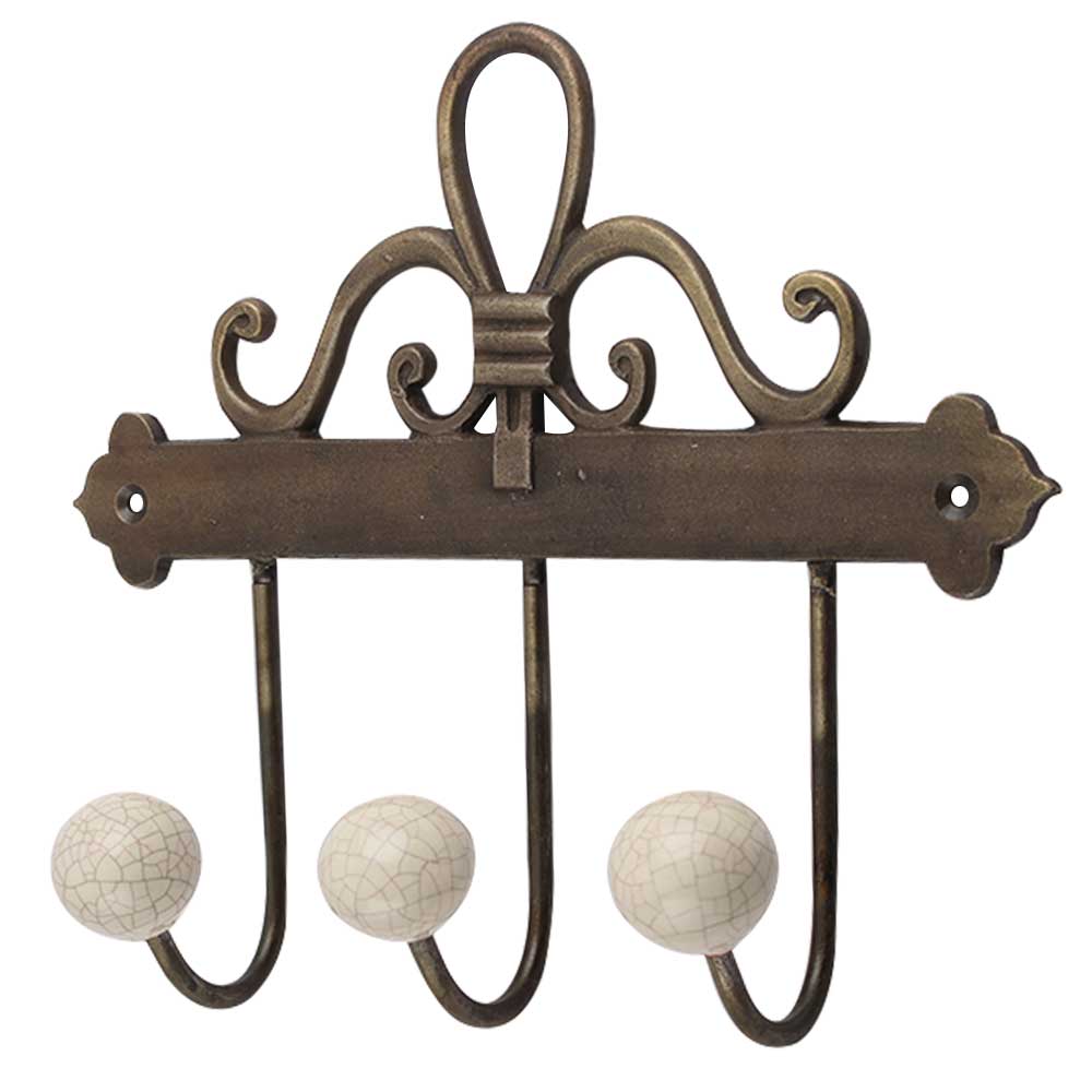 Denne smukke knagerække fra Lundager kombinerer klassisk design med fine, dekorative detaljer. Den er udført i metal med en elegant, let antik finish og prydet med tre porcelænsknopper i krakkeleret mønster, som tilfører et charmerende og tidløst udtryk. Knagerækken passer perfekt i entréen, køkkenet eller soveværelset, hvor den både fungerer praktisk og som en dekorativ detalje på væggen. De tre kroge giver god plads til jakker, tasker eller håndklæder. Med sit romantiske og vintage-inspirerede design er denne knagerække ideel til dig, der ønsker at skabe en hyggelig og personlig indretning med klassiske elementer.