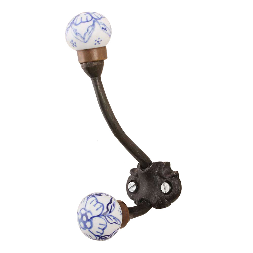 Lundager Dobbelt Knage Med Porcelæns Knop, Hvid / Blå
