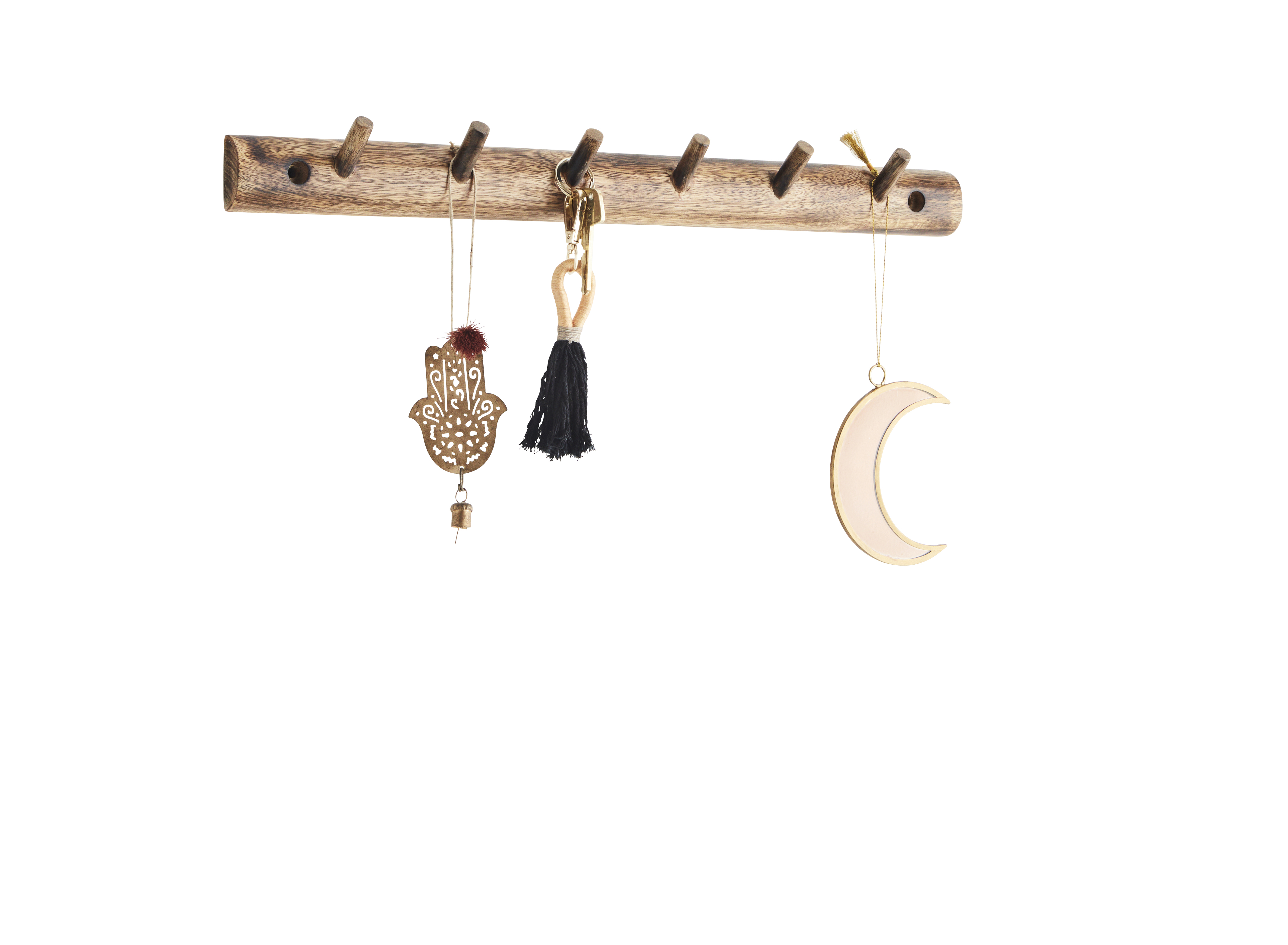En super flot knagerække fra Madam Stoltz. Den flotte knagerække er udført i mangotræ og har 5 knager, som er nemme at få noget til at hænge på. Knagerækken vil pynte i ethvert rum. Brug knagerækken til jakker og tørklæder, lige ved indgangsdøren i entreen eller i køkkenet til dine tapas fad, eller viskestykker og grydelapper. Du kan også med fordel bruge den i soveværelset til dit tøj og din morgenkåbe, eller i badeværelset til dine håndklæder.
