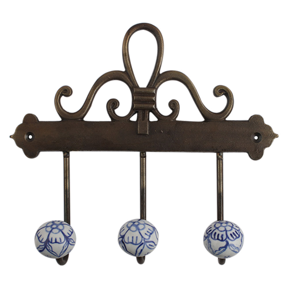Denne smukke knagerække fra Lundager kombinerer klassisk design med fine, dekorative detaljer. Den er udført i metal med en elegant, let antik finish og prydet med tre porcelænsknopper i blå-hvidt mønster, som tilfører et charmerende og tidløst udtryk. Knagerækken passer perfekt i entréen, køkkenet eller soveværelset, hvor den både fungerer praktisk og som en dekorativ detalje på væggen. De tre kroge giver god plads til jakker, tasker eller håndklæder. Med sit romantiske og vintage-inspirerede design er denne knagerække ideel til dig, der ønsker at skabe en hyggelig og personlig indretning med klassiske elementer.