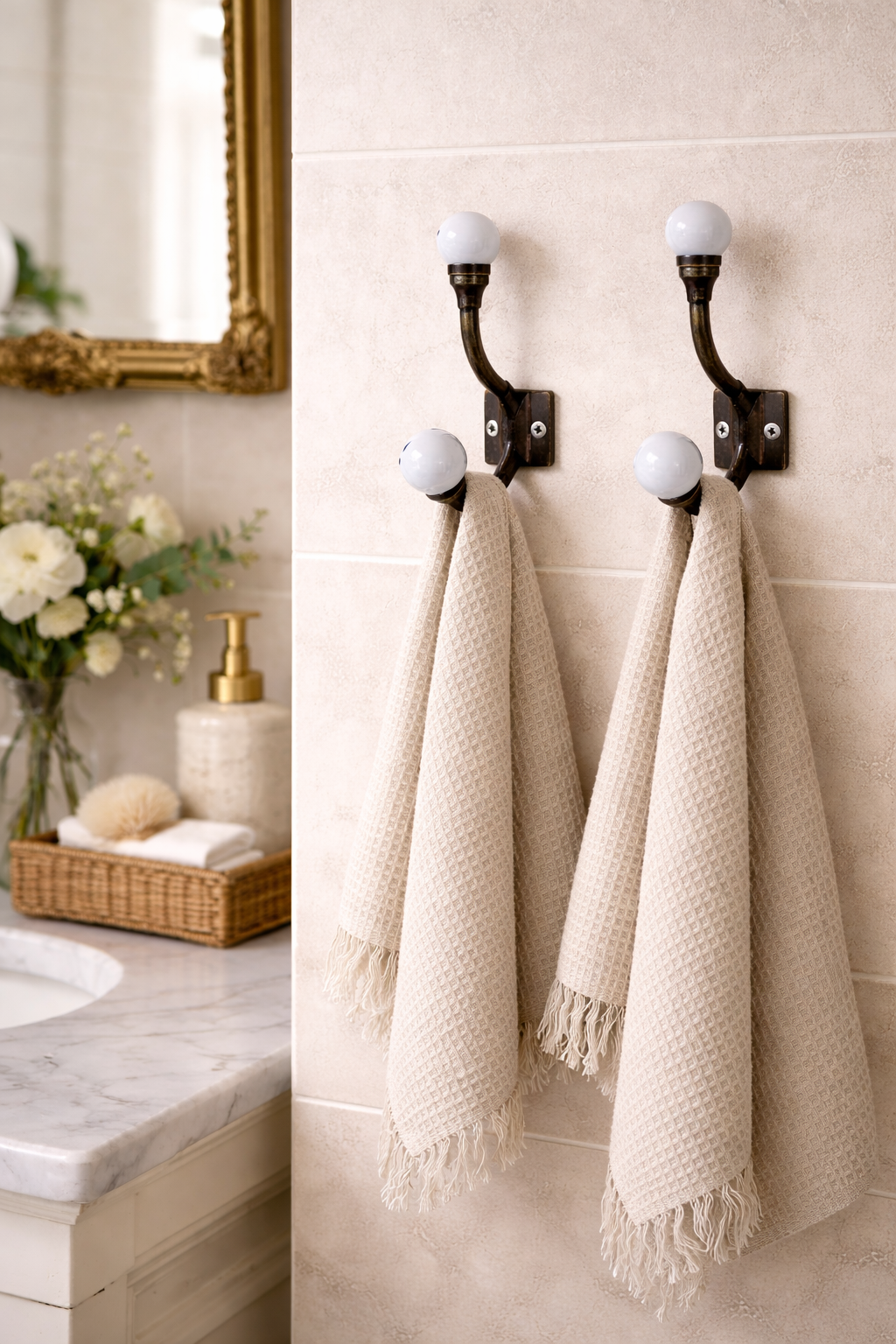 Oplev charme og funktionalitet med den nostalgiske knage fra Lundager. I en elegant antique brass-finish prydet med to smukke hvide porcelæns knopper, tilbyder denne knage en dobbelthængemulighed til dine frakker og tørklæder. Skab orden i entreen, eller giv dit soveværelse, badeværelse eller køkken et stilfuldt opdatering. Hæng flere knager op i en praktisk række eller forskudt, alt efter dit behov. Brug knagen alene eller som en del af et flot arrangement. Det er også muligt at lave en smuk knagerrække med disse knager.