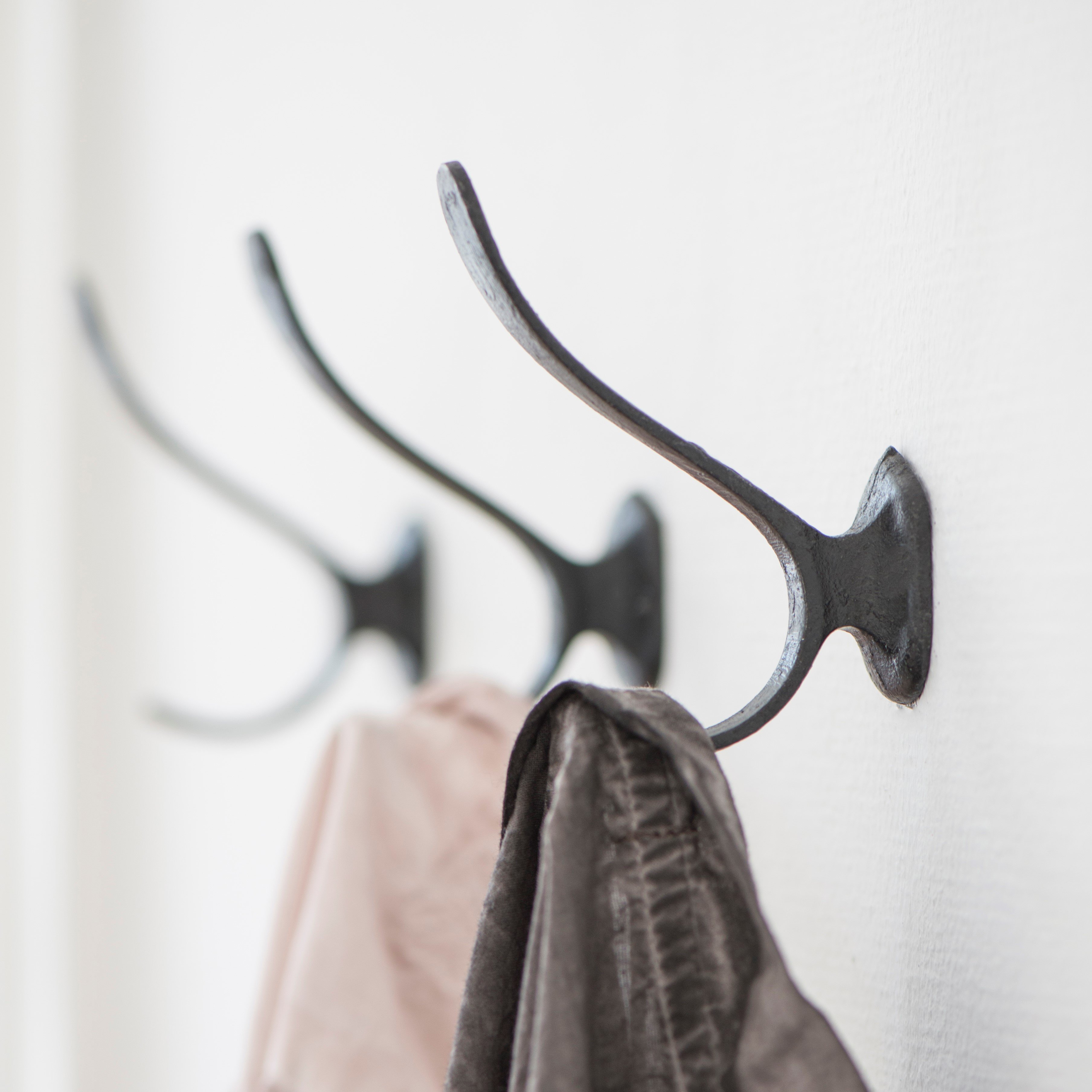 Fra Ib Laursen er her en fin nostalgisk metal knage med dobbelt hænge mulighed. Knagen kan bruges i flok eller alene, alt efter dit behov. Det ser også rigtig fint ud at sætte ene forskellige knage op, enten direkte på væggen eller monteret på en planke i den længde, netop du har brug for. Hæng metalknagen i soveværelset til din morgenkåbe, i entreen til dit overtøj, på badeværelset til håndklæger - ja mulighederne er mange og du bestemmer.