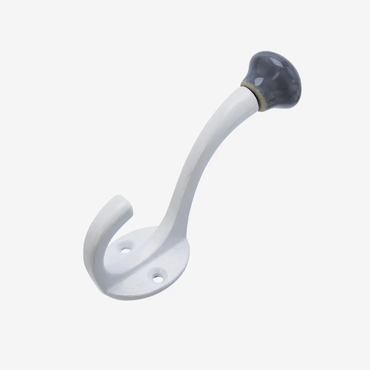 Madam Stoltz Dobbelt Hvid Jern Knage Med Grå Porcelæns Knop