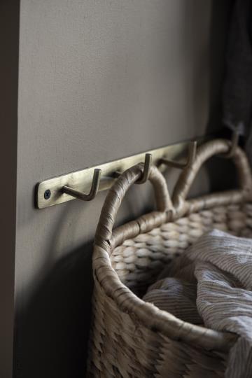 En utrolig enkelt og minimalistisk knagerække fra Ib Laursen. Den flotte metalknagerække i messing har 8 knage som er nemme at få noget til at hænge på. Knagerækken er er super moderne med sit enkelte design og i det smukke messing look. Brug knagerækken til jakker og tørklæder, lige ved indgangsdøren eller i bryggerset. Du kan også med fordel bruge den i soveværelset til dit tøj og din morgenkåbe, eller i køkkenet til Mor`s forklæde og viskestykker. Bemærk kun 1 stk. tilbage.