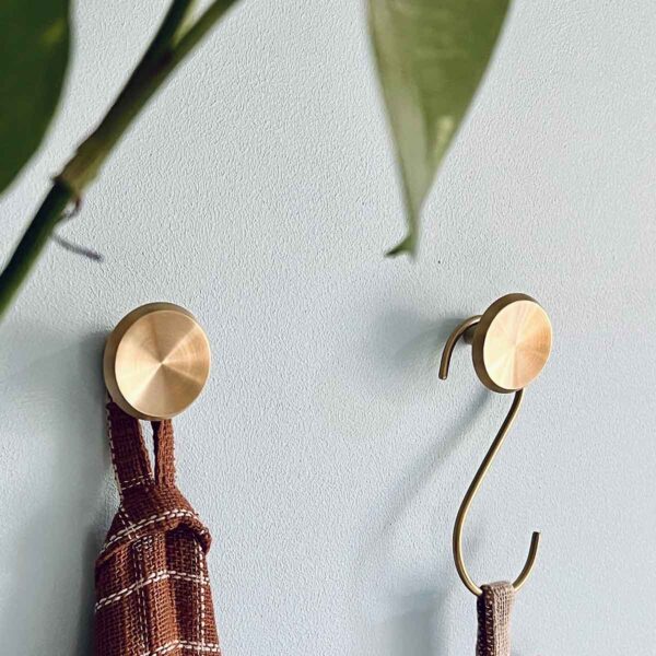 Endnu en smuk, stilfuld og elegant messing knage fra MOUD Home. Knagen har en buet overflade, og så smuk med sit børstede messing look. Denne knagen har flere anvendelsesmuligheder, da den både kan brugs som greb til dine skabslåger, eller som knage på væggen, til dine håndklæder eller dit overtøj i entreen. Der medfølger skruer til begge formål. Brug knagen/grebet på dit badeværelse, hvor det er super flot og moderne med messing - skift dine håndtag på skabslågerne, og monter 2-3 knager på væggen til dine håndklæder. Du kan ligeledes anvende disse knager i køkkenet til dine viskestykker og grydelapper - samt bruge dem som greb på dine køkkenlåger. MOUD Home Pin knagen vil tilfører din indretning et eksklusivt udtryk med sin gyldne finish, dette uanset om den skal anvendes som knage eller greb. Du finder også denne Knage i en lille model her hos Butik Lundager.