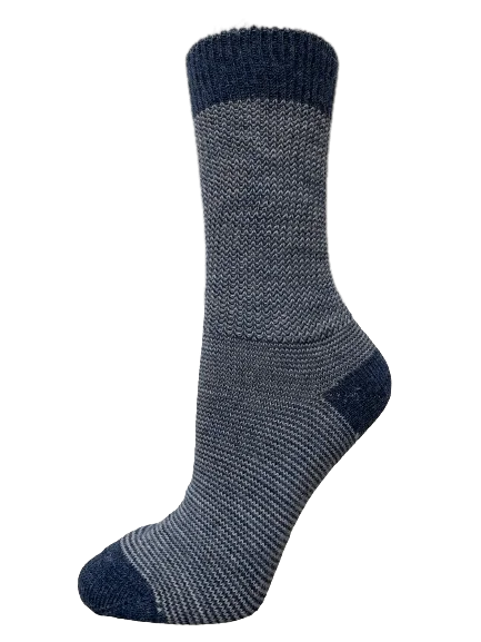 Alpaca sokker fra Læsø Uldstue i farven Jeansblå/Grå. Fantastisk gave ide til dem som har alt, eller dig som ønsker et luksuriøst produkt til at holde dine fødder glade og sunde i løbet af de kølige måneder. Uldsokkerne er fremstillet i 70% Baby Alpaca og 30% Nylon, hvilket sikre både en varm strømpe, men også en strømpe med en god slidstyrke. Disse uldsokker er utrolig bløde og lækre at have på, og er ideelle til både indendørs og udendørs aktiviteter, lige fra vintervandreture til hyggelige aftener foran pejsen. Kan maskinvaskes på Uldprogram max 30 grader, og tages straks ud af maskiner for at lufttørre. Fås i størrelse fra 18 til 48.