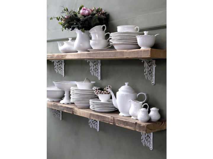 Rigtig sød og fin hyldeknægt med flot blad mønster i antique creme fra Chic Antique. Brug et par gamle gulvbrædder og sav dem til, i den længde som passer dig - let og billigt har du nu en unik hylde, sammensat med de flotte støbejerns hyldeknægte. Du kan bruge lige den hylde du har lyst til - har du en ikke så pæn gammel hylde, kan du male med Kalkmaling, så den passer til de fine hyldeknægte. Brug hyldeknægtene i køkkenet i stedet for overskabe, herpå kan du stille dine glas og yndlingskrus eller glaskrukker med gryn, pasta, kerner og nødder. De er i støbejern med dekoration af en bladranke og fra Chic Antique. En hyldeknægt som både gør nytte og som er super smuk at se på. Sælges enkeltvis.