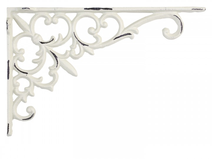 Smuk og romantisk hyldeknægt i støbejern fra Chic Antique. Se lige den smukke hyldeknægt i farven antique creme, med et skønt mønster, som passer ind i det hyggelige hjem med vintage og fransk landstil. Hyldeknægten kan med fordel bruges i køkkenet i stede for overskabe. Hæng 2 eller 3 hyldeknægte i forlængelse af hinanden og placer en flot hylde ovenpå, her du kan stille dit porcelæn, dine pynteting, eller måske glaskrukker med havregryn, pasta, nødder eller diverse kerner. Disse hyldeknægte giver en kedelig hylde den sidste finish, og gør den til noget helt specielt som du ikke ser overalt. Du vælger selv hylden som kan være i hvilket som helst træ - nyt som gammelt, malet som råt, alt efter hvad du synes er pænest, der er mange muligheder for at skabe noget helt unikt.