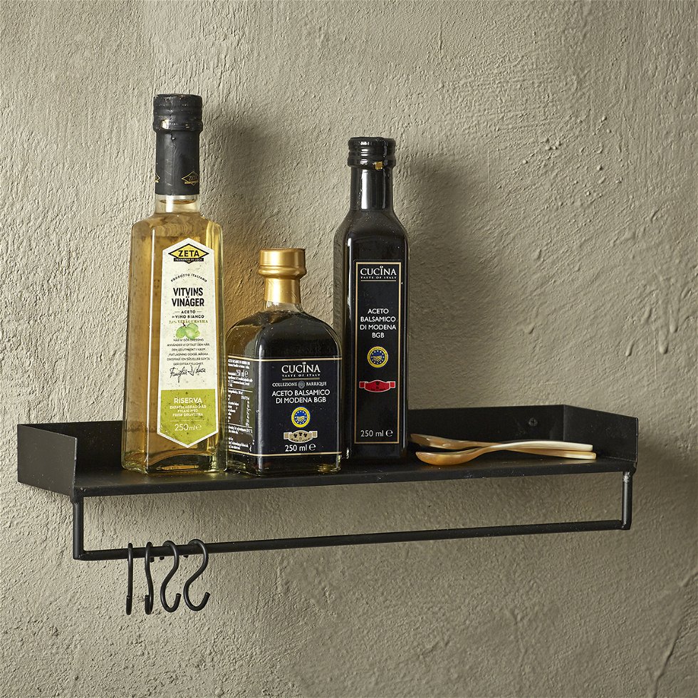 Her er den flotte væghylde med plads til S-kroge fra Speedtsberg i farven sort. Bemærk: S-kroge medfølger ikke.