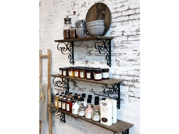 Chic Antique væghylde i træ med tilhørende sorte hyldeknægte. Denne væghylde er meget anvendelig i ethvert hjem, og kan bruges i næsten alle rum lige fra køkken, kontor, stue og til børneværelset. Hæng eventuelt 2 eller 3 væghylder ved siden af hinanden eller under hinanden i køkkenet. Brug de flotte hylder til opbevaring af diverse køkkenting som eksempelvis glaskrukker med gryn og nødder, dine yndlingskrus og glas eller måske dine pynteting og en flot grøn plante. Det er muligt at monterer/hænge en rundstok imellem de to hyldeknægte lige under selve hylden. Mal eventuelt rundstokken sort så den matcher hyldeknægtene og hæng S-kroge på pinden. På den måde kan du hænge nogle krus, grydelapper, køkkenredskaber mv. på S-krogene og have ekstra opbevaringsplads, og så gør det jo ikke noget at det også ser smukt ud. Denne Hylde med hyldeknægt har vi også i stor størrelse, hvor længden på hylden er 80 cm.